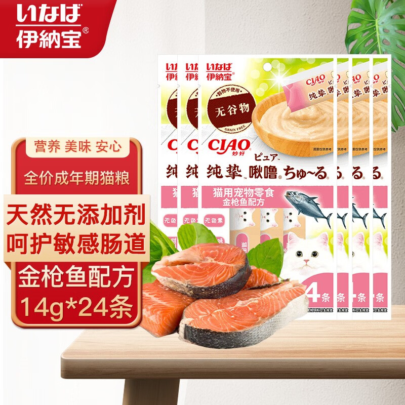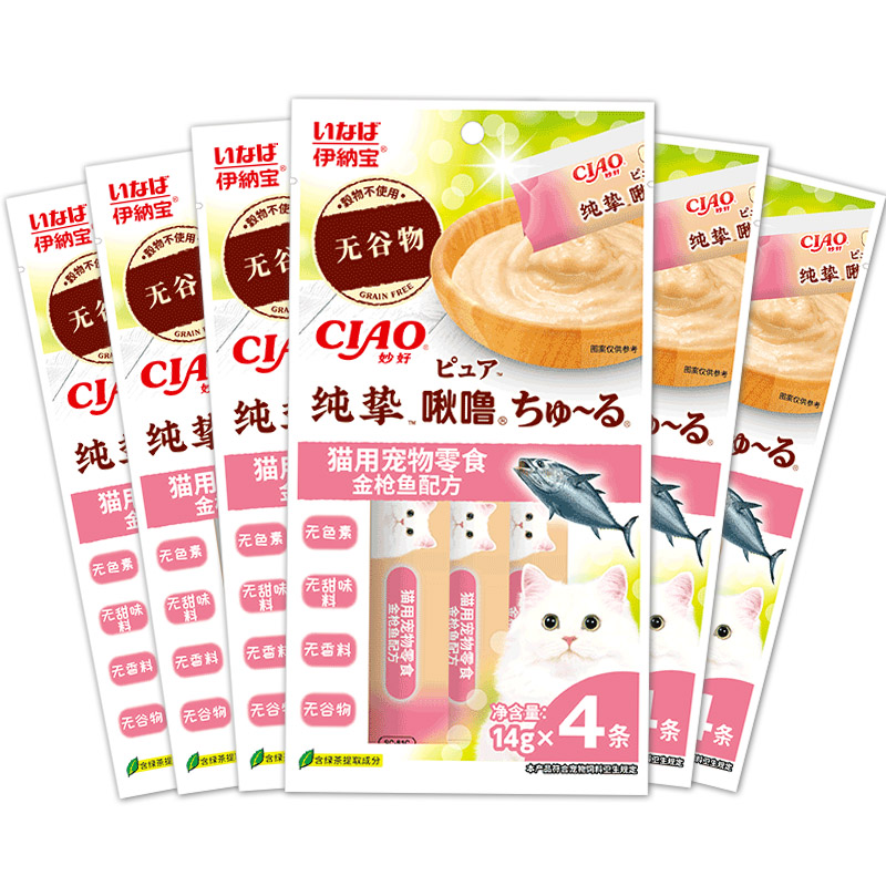 伊纳宝纯挚无谷物啾噜 猫条宠物猫零食营养成猫湿粮肉泥 金枪鱼配方14g×4条x6包
