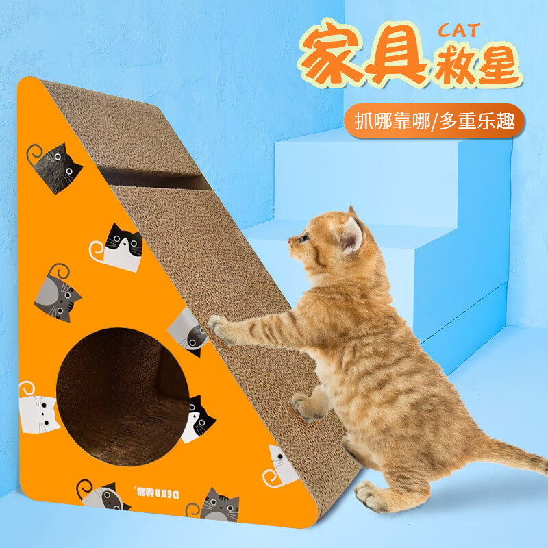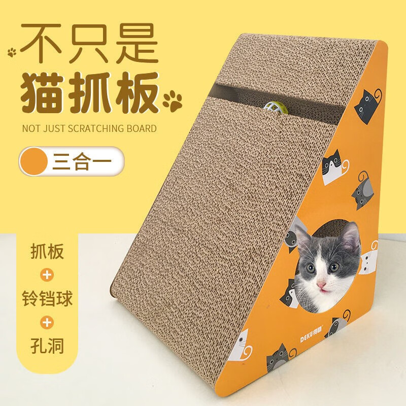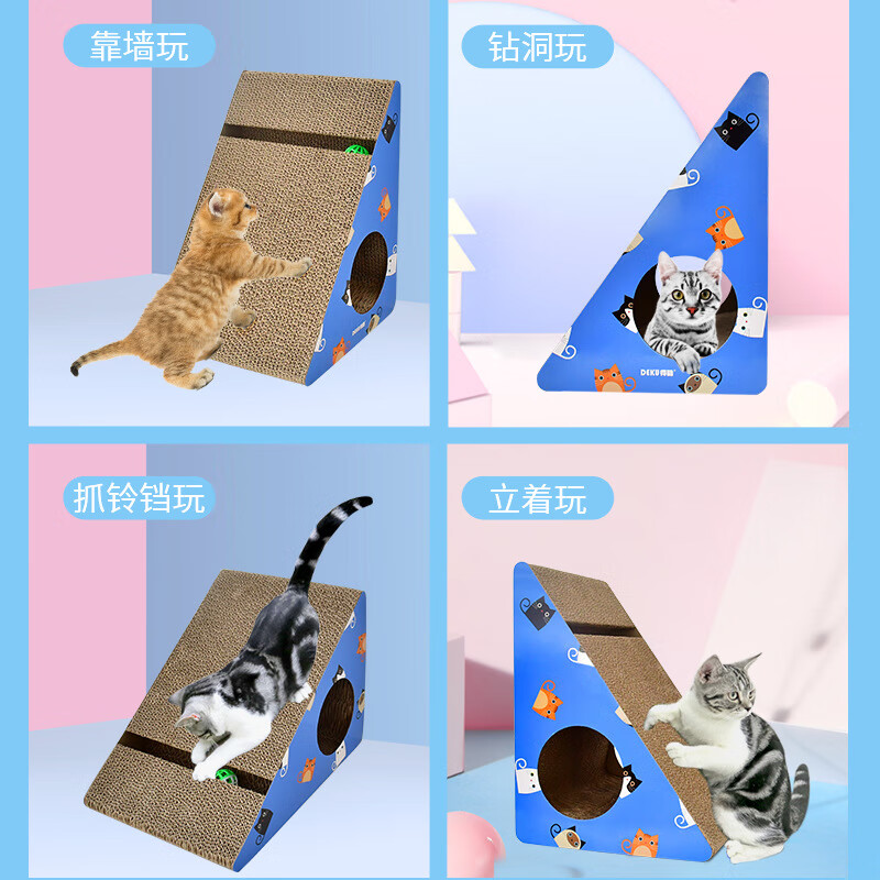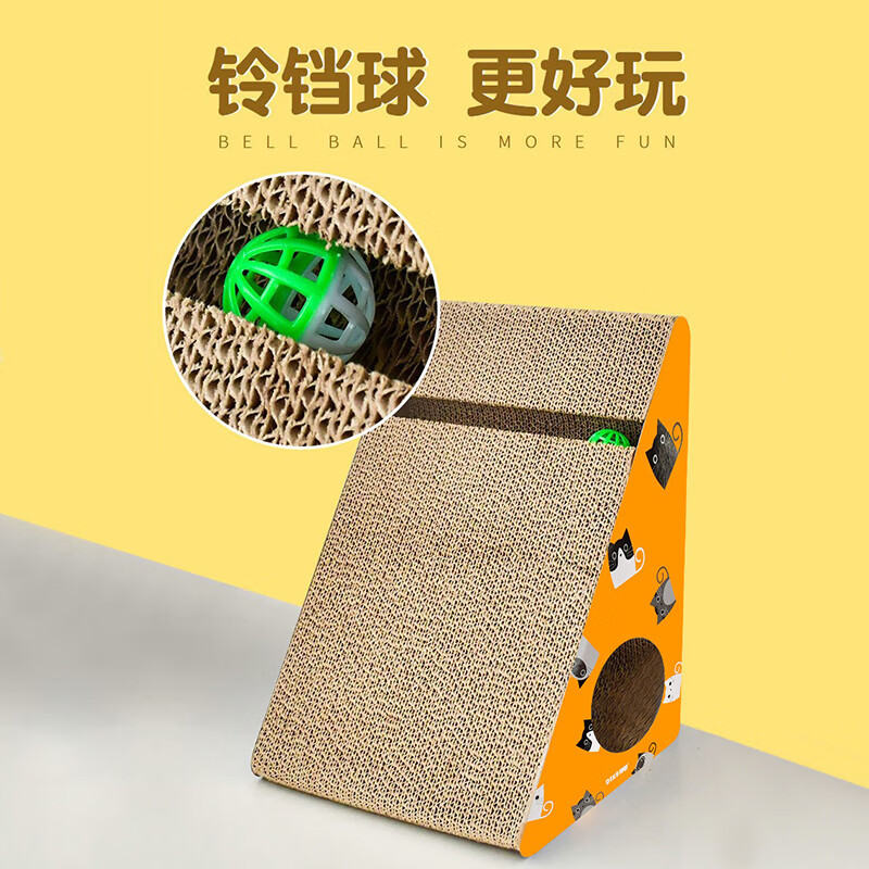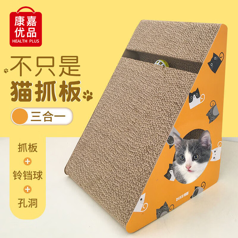 康嘉优品 三角形立式猫抓板猫窝带铃铛瓦楞纸耐抓耐磨不掉屑磨爪器磨爪板猫玩具猫用品