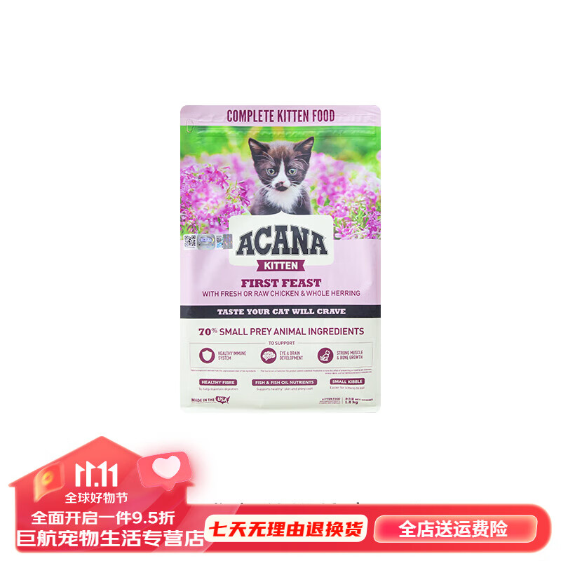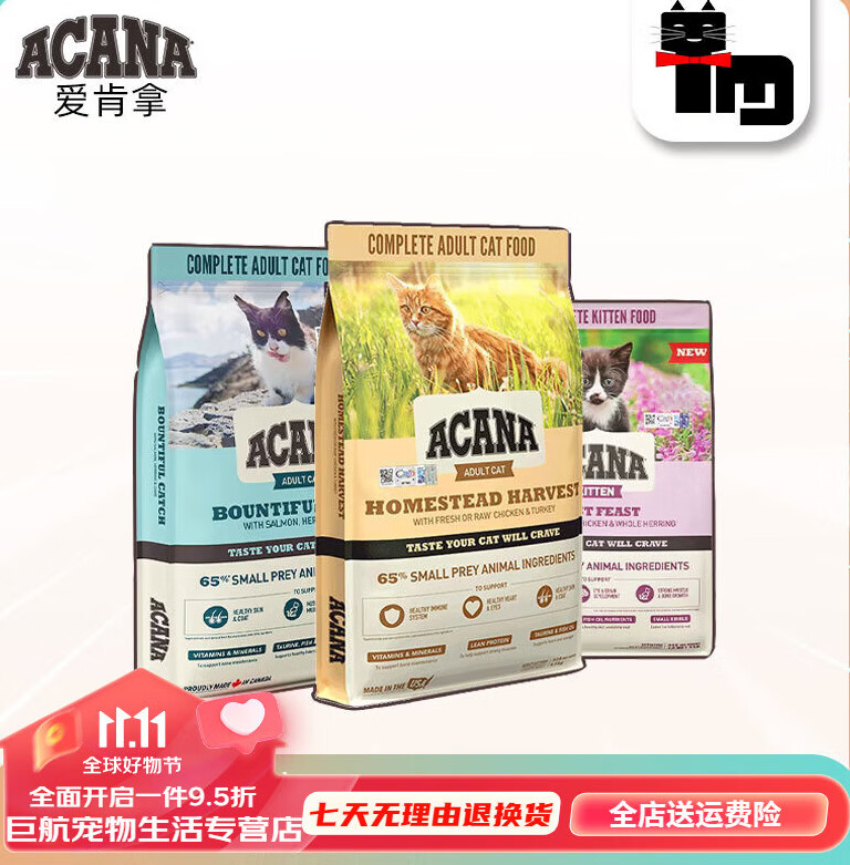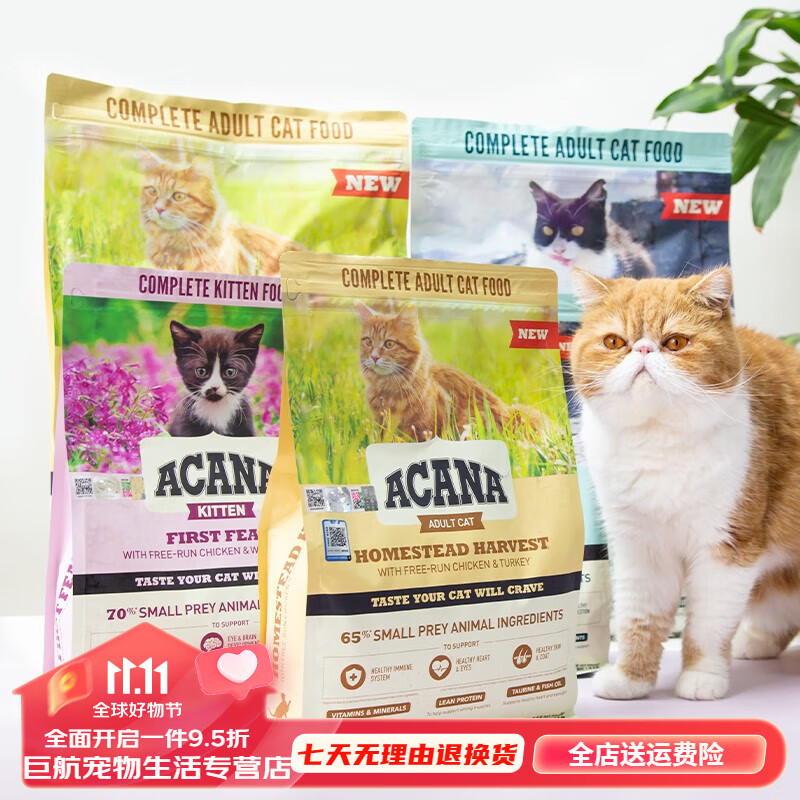 凛东土猫宠物 ACANA爱肯拿猫粮抓多多丰收家园成幼猫发腮猫干粮鸡肉鱼 美版场盛宴幼猫1.8kg-24.7 0kg以选项重量为准