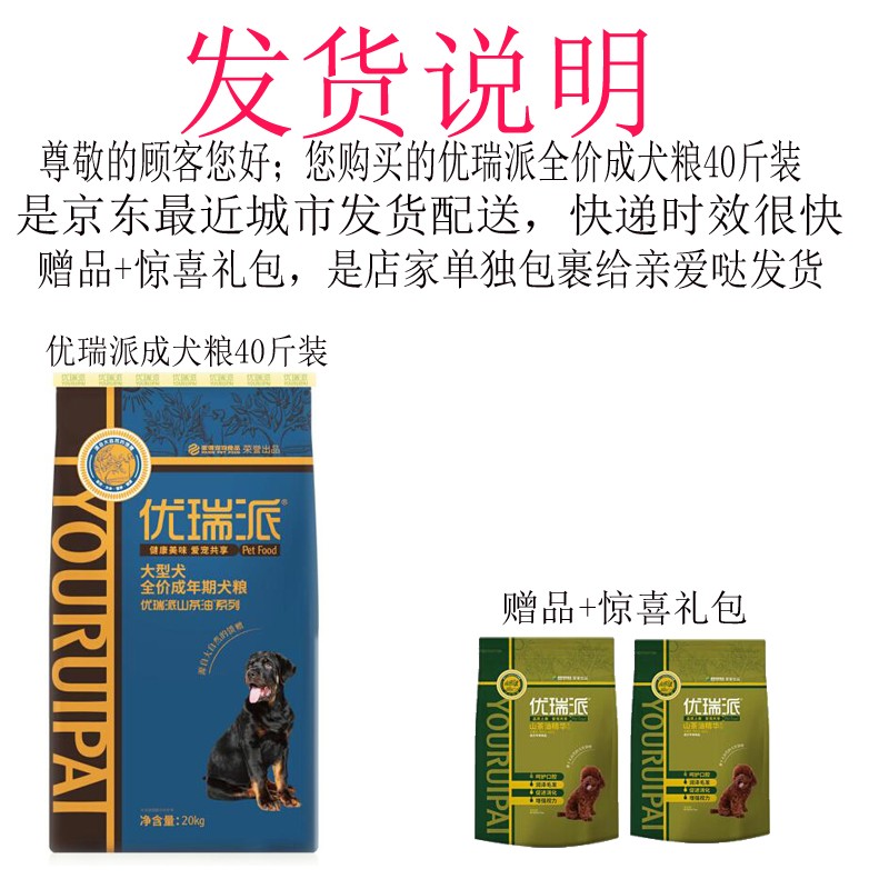 优瑞派狗粮大型犬成犬狗粮山茶油20kg犬场通用大型犬金毛萨摩耶马犬德牧