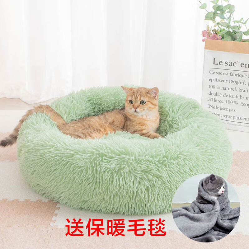 宠物冬季保暖猫窝冬咪窝狗狗窝四季通用用品深度睡眠加厚猫床 深度睡眠【果绿色】 保暖毛毯 M-直径50cm(适合10斤内宠物)