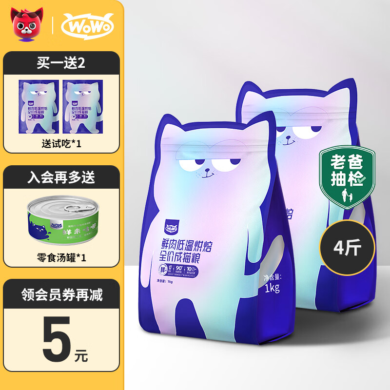 WOWO喔喔猫粮成猫全价鲜肉低温烘焙猫粮无谷粮英短布偶猫粮 4斤 | 配试吃*2 | 入会再配罐头