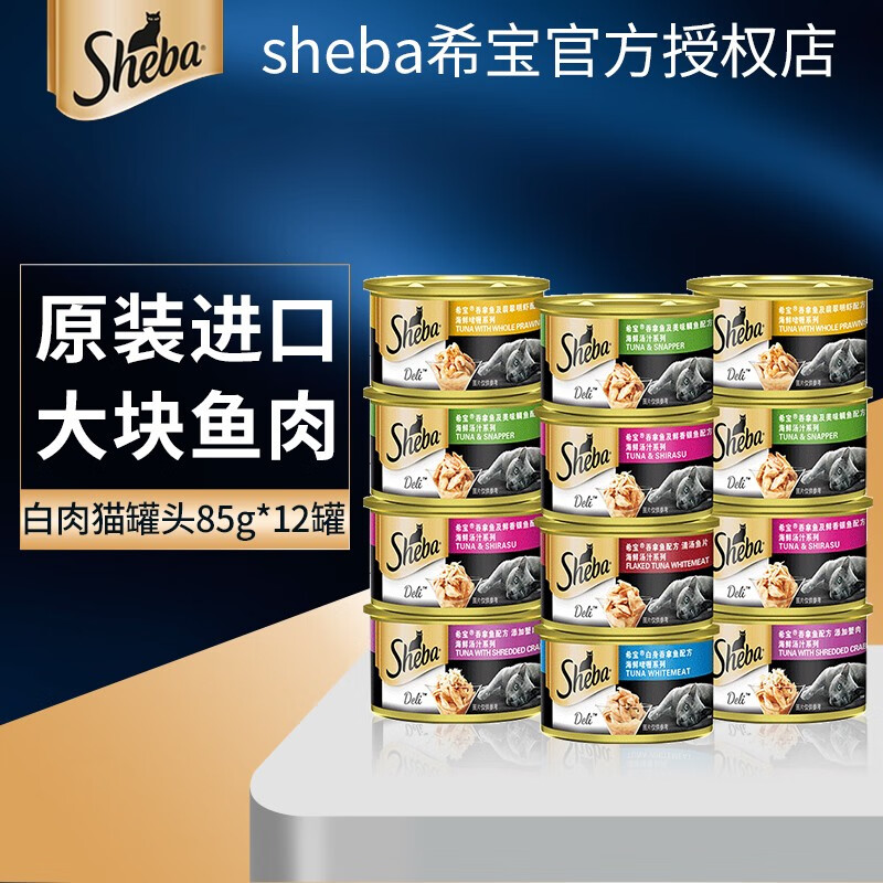 希宝(Sheba)猫罐头泰国进口金罐白肉猫咪零食营养增肥发腮成幼猫湿粮包拌粮 混合口味85g*24罐