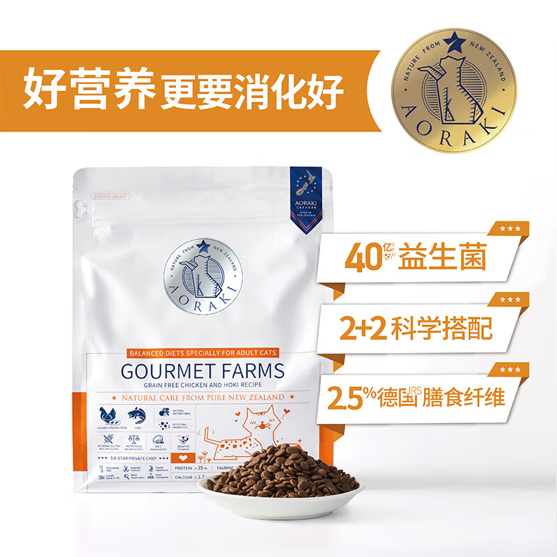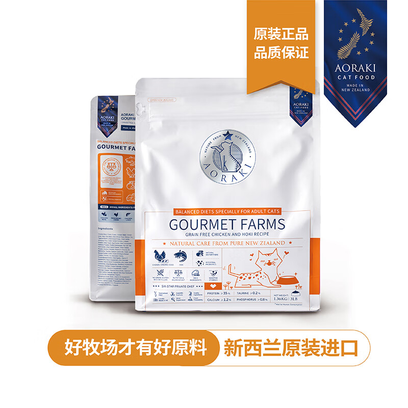 云顶星(aoraki)新西兰原装进口 鸡肉鳕鱼无谷成猫猫粮美味配方1.36kg