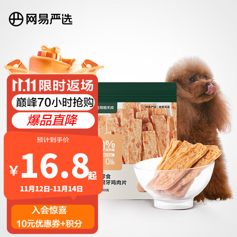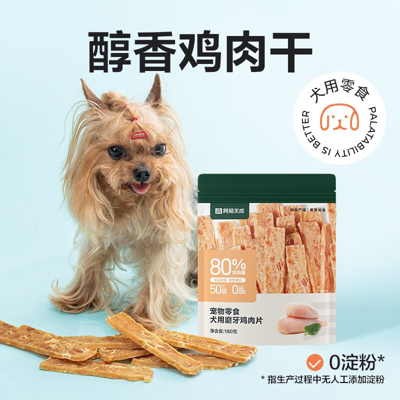 网易严选 磨牙鸡肉片 70%肉含量醇香犬用零食磨牙棒柯基柴犬泰迪训练奖励 180g*1袋
