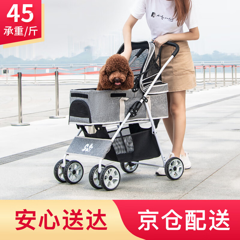 DO DO PET分离式宠物推车中小型犬猫咪外出手推车轻便折叠泰迪柯基狗狗推车 灰色-可分离摇篮(承重45斤内)