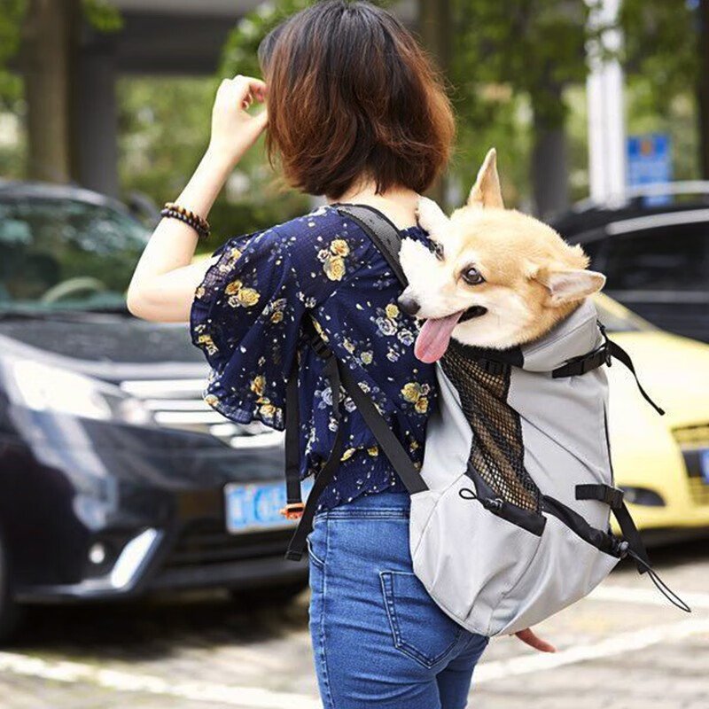 贝尼宠 狗包外出背包宠物便携双肩包狗狗露头包户外宠物包 背狗包 灰色 M5-15斤