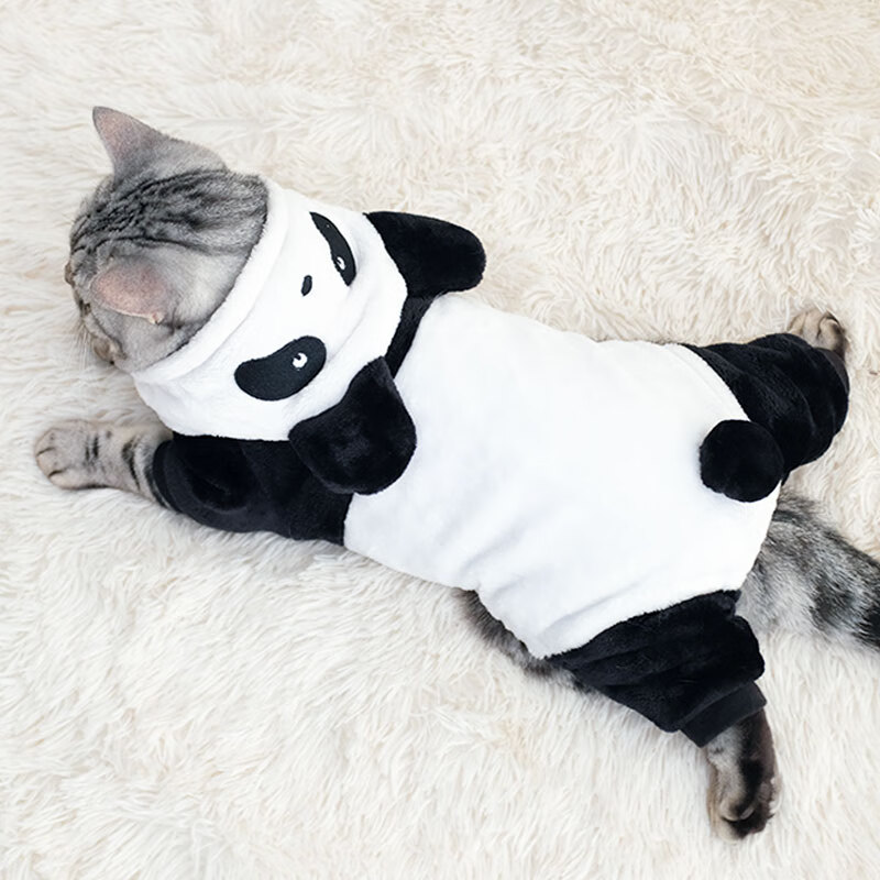虹弦见网红猫咪衣服冬装冬季可爱四脚保暖秋冬小猫猫宠物幼猫防掉毛冬天 宠物熊猫四脚衣 M(建议6-8斤,用透明胶即可将衣物或沙发上的猫处