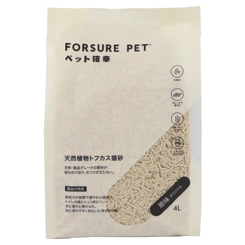 宠确幸豆腐猫砂 可冲厕所无尘不粘底小颗粒原味/豆腐砂 快速吸水 强力结团 原味4L(1.6kg)