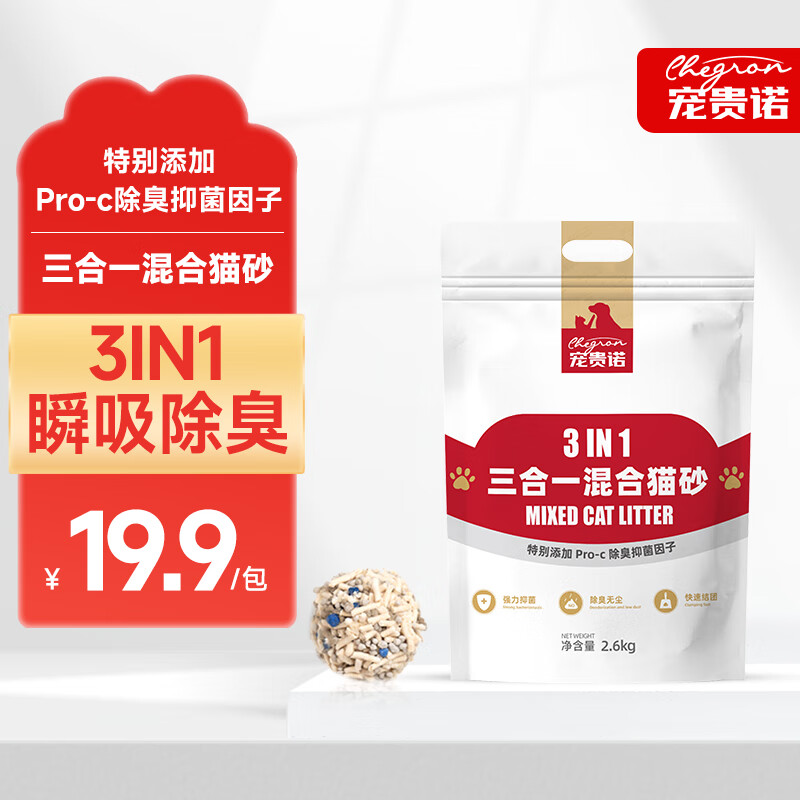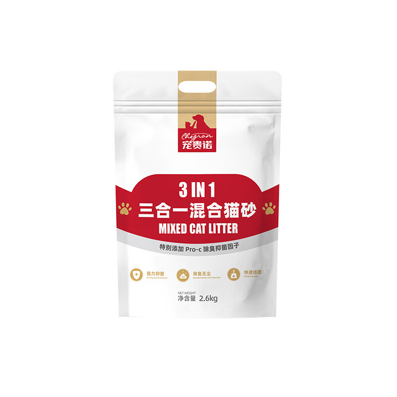 宠贵诺三合一混合猫砂豆腐膨润土混合除臭可冲厕原味奶香快速结团天然 三合一经典混合猫砂2.6kg