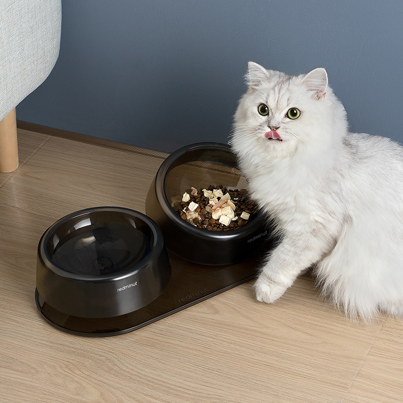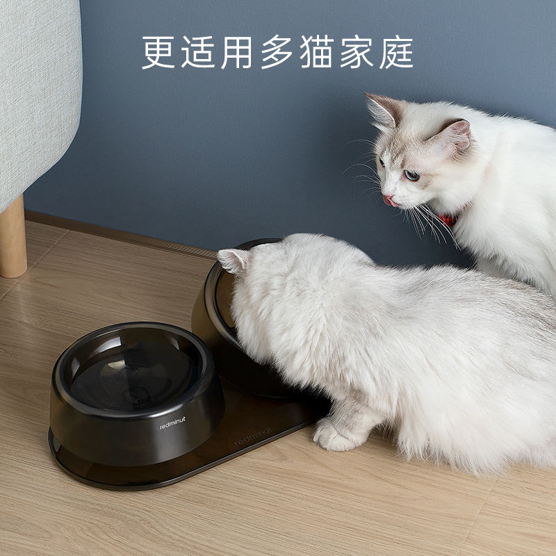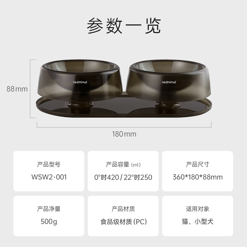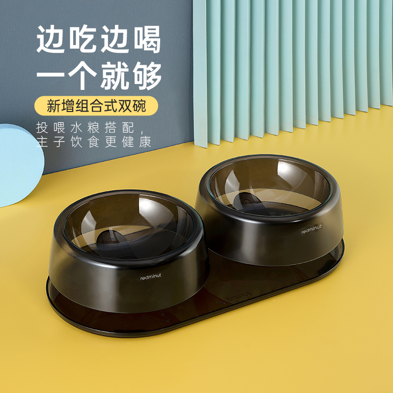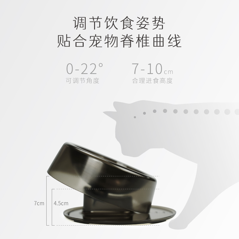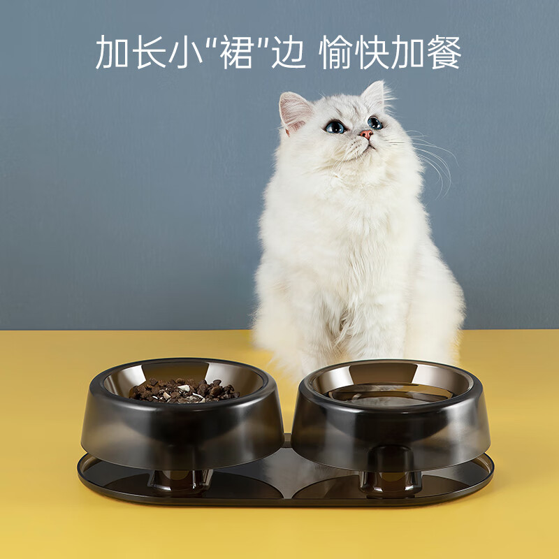 小红栗猫碗双碗可调节护颈防打翻喝水狗碗猫食盆饮水饭碗宠物用品 琉璃黑