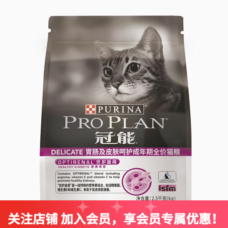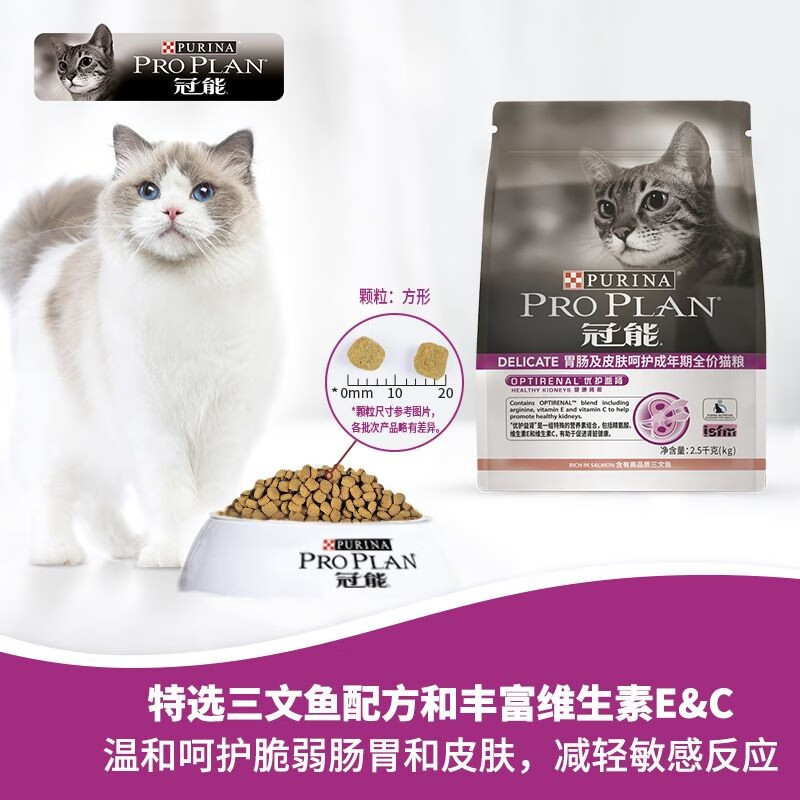 冠能(PRO PLAN)猫粮宠物成猫全价粮2.5kg布偶英短通用粮 胃肠及皮肤呵护猫粮2.5kg
