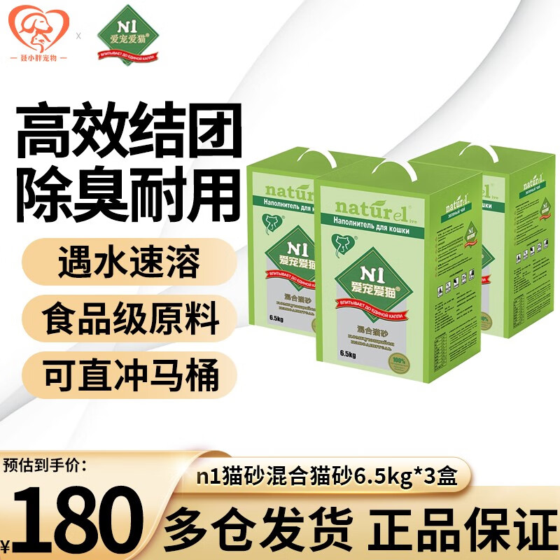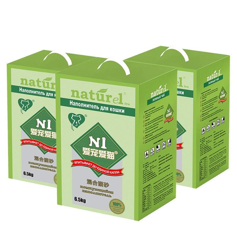 N1 爱宠爱猫N1猫砂豆腐低尘结团可冲马桶约6.5kg绿茶玉米原味活性炭混合猫砂 n1猫砂混合猫砂6.5kg*3