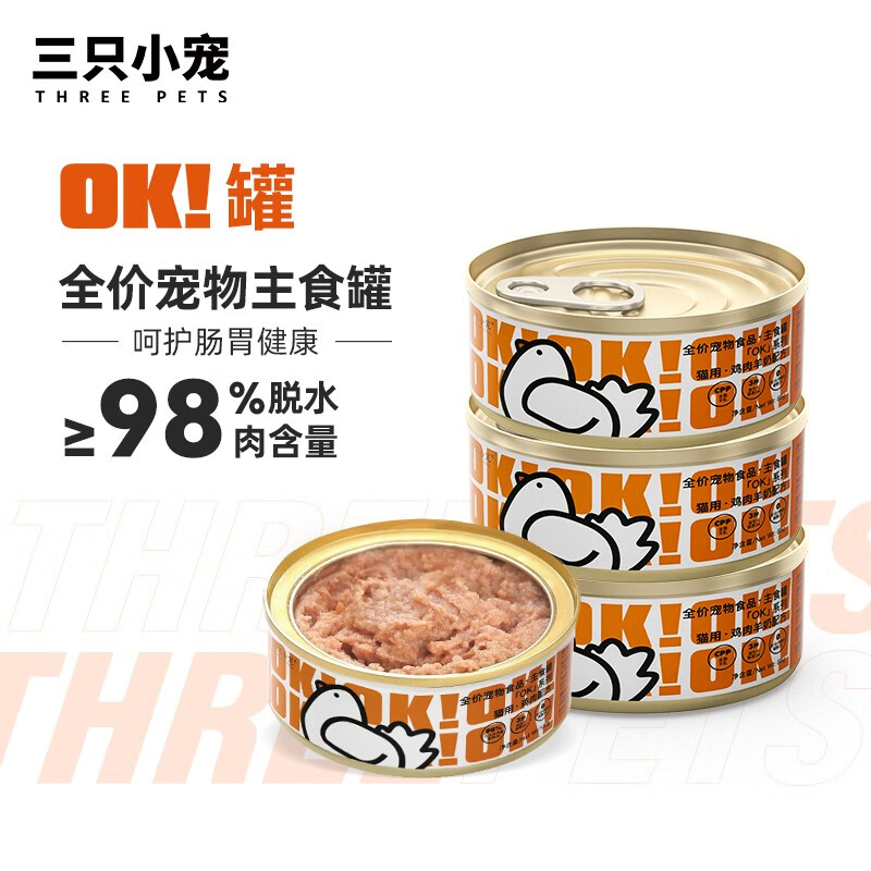 三只小宠猫罐头主食罐猫咪湿猫粮鸡肉羊奶营养增肥OK罐头 85G 鸡肉羊奶85G*4