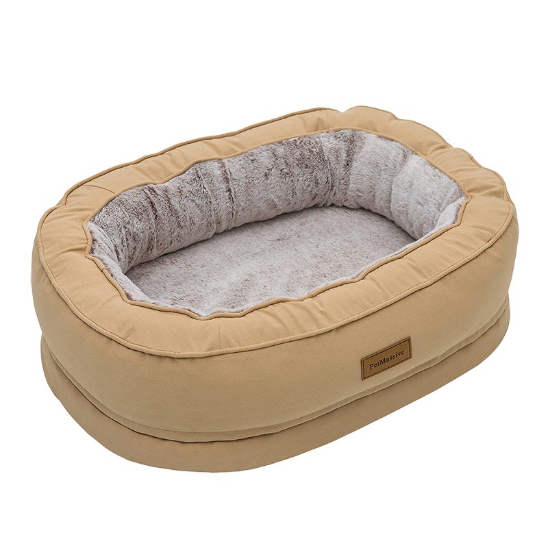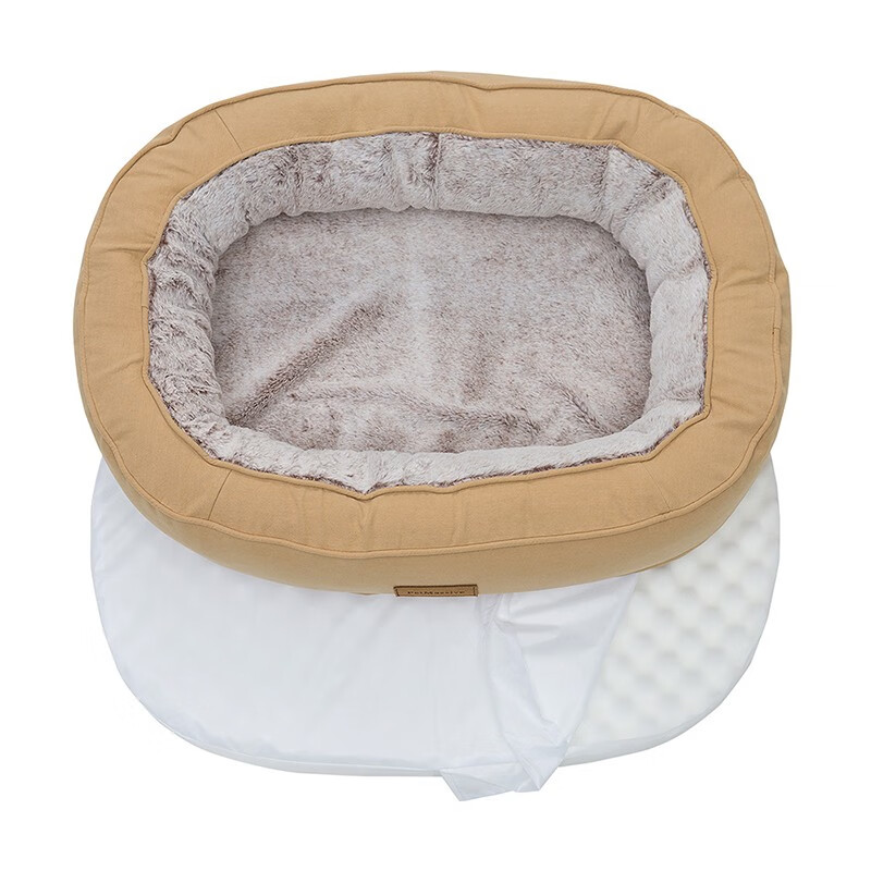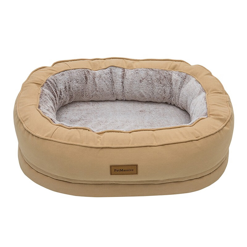 PetMassive狗窝四季通用可拆洗机洗宠物猫窝狗垫子狗窝室外柯基泰迪小大型犬 椭圆窝(保暖加绒)卡其色 XL:120*80*25.5