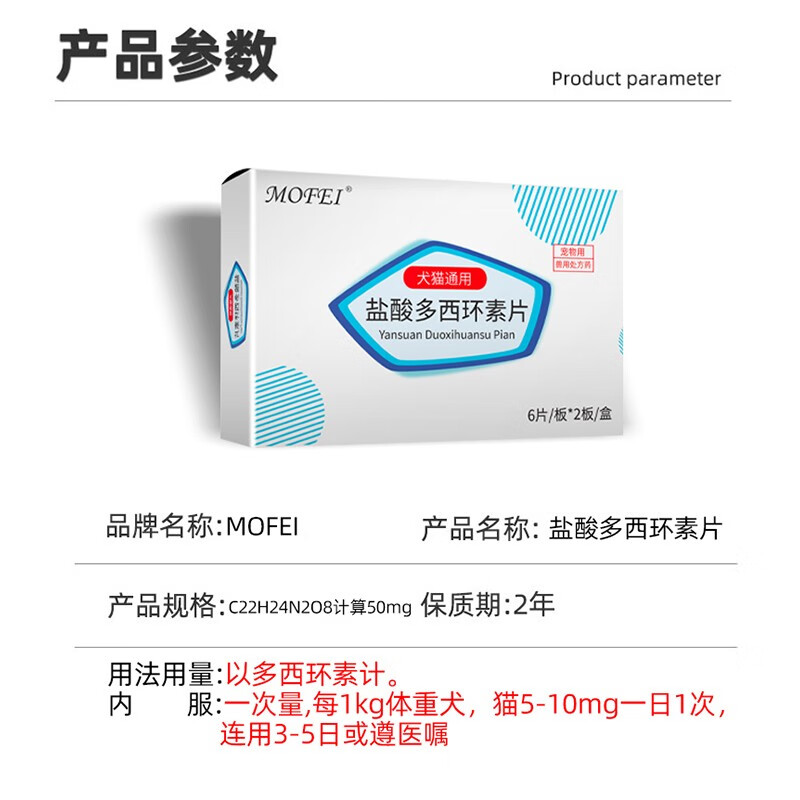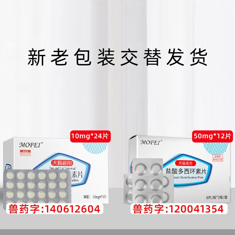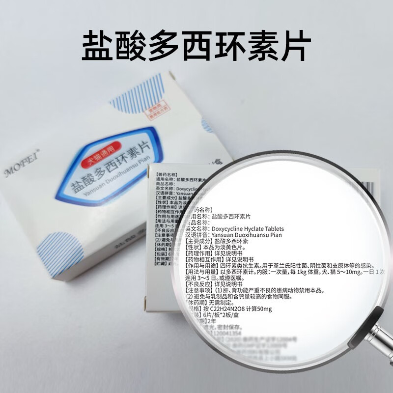 mofei犬猫盐酸多西环素片12片/盒 狗狗猫咪抗生素口服药品50mg/片