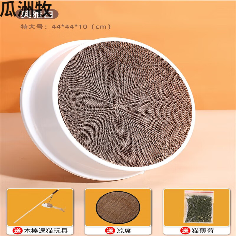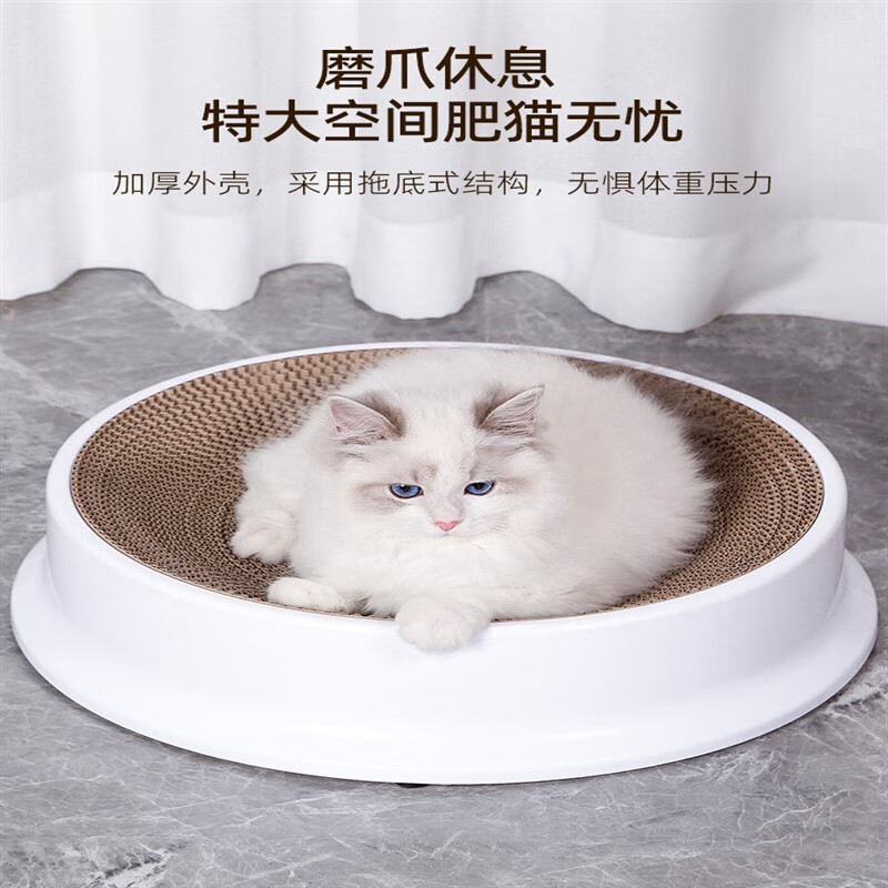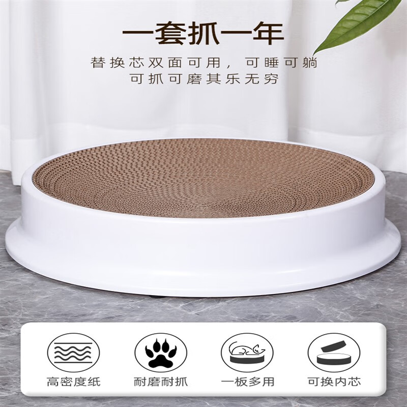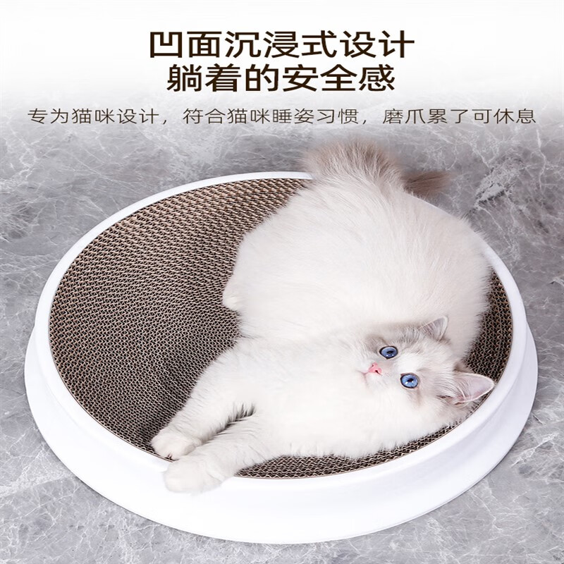 猫抓板窝圆形猫爪板耐磨瓦楞纸猫窝抓盘一体不掉屑猫玩具猫咪用品 高雅白特大号 猫薄荷 凉席 逗猫
