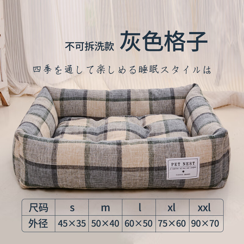 皆百福 猫窝四季通用狗窝可拆洗款四季通用小型犬法斗比熊夏天宠物床狗床全棉猫床猫窝 方窝灰格子 S-小型