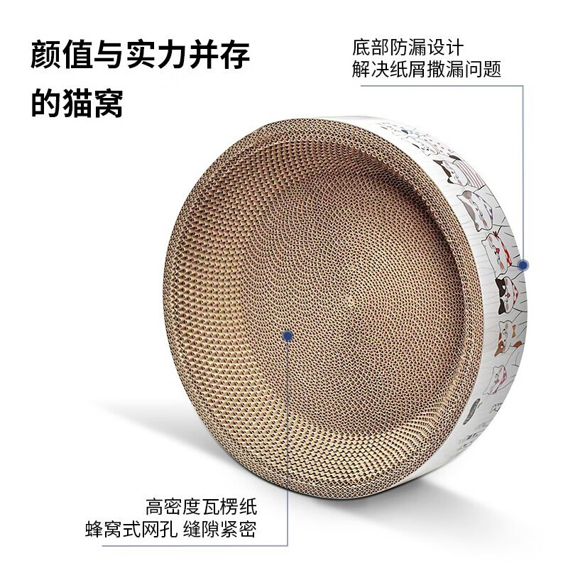 得酷【赠猫薄荷】猫抓板 纸壳猫窝碗型 瓦楞纸猫碗 圆形猫咪磨爪玩具 耐磨不掉屑猫咪磨爪器 椭圆猫窝 外径42CM适合8斤内猫咪