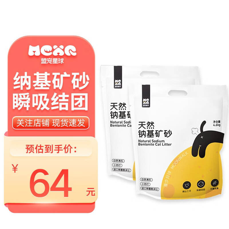 盟宠星球猫砂4.6kg天然膨润土矿石猫砂谷物混合原味猫砂20斤结团快 天然纳基矿砂4.6kg*2