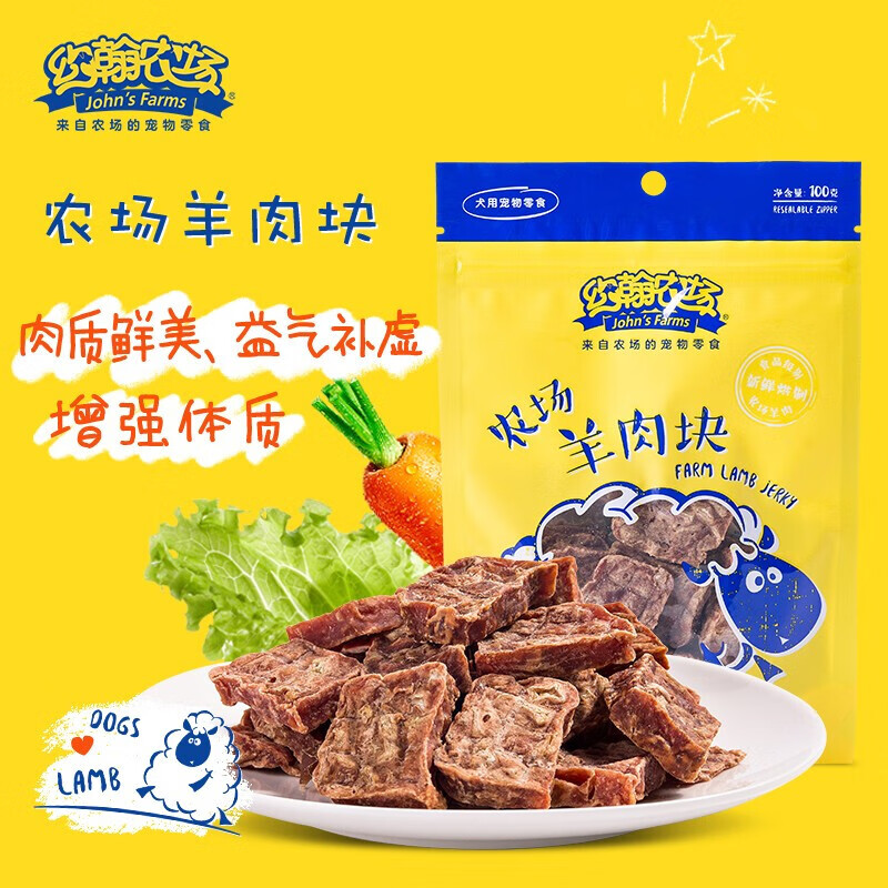 约翰农场狗狗零食大礼包宠物训犬鸡胸肉干泰迪博美金毛幼犬洁齿磨牙肉干 羊肉块100g