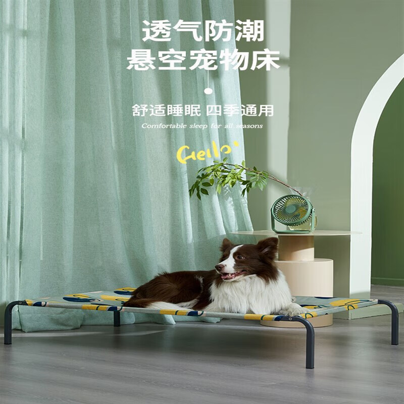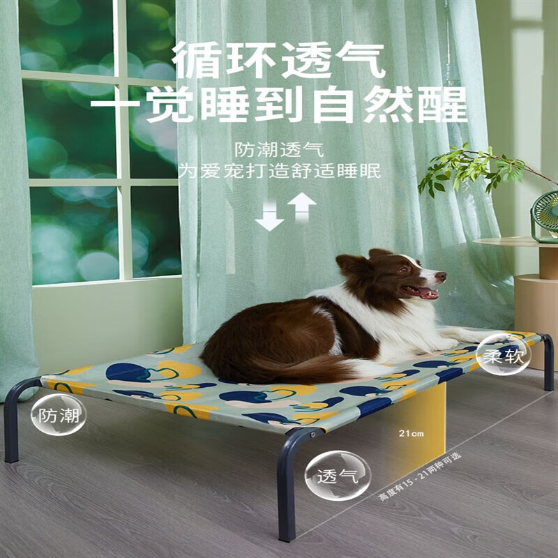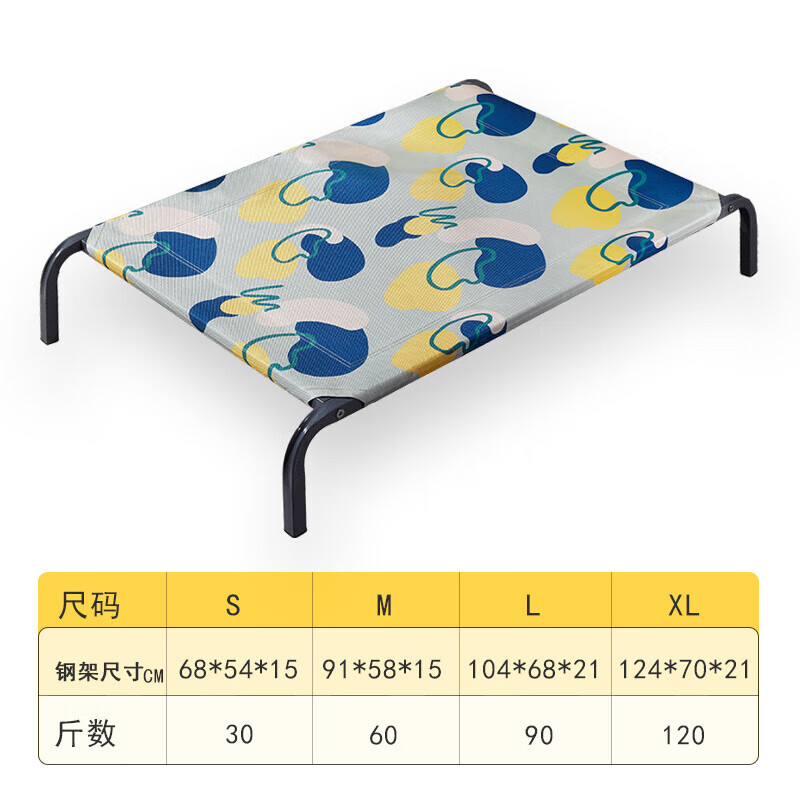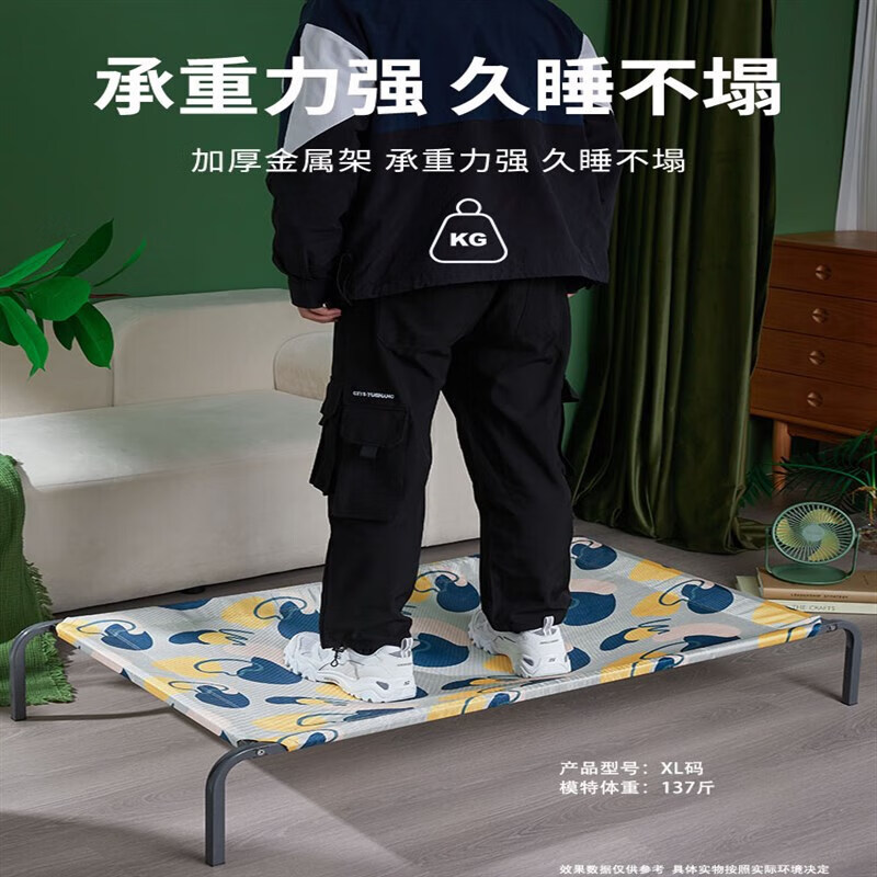 宠淘气狗狗行军床狗窝四季通用狗床夏季中大型犬可拆洗金毛柯基宠物用品 绿色插画 M码-91*58*15建议60斤内宠物