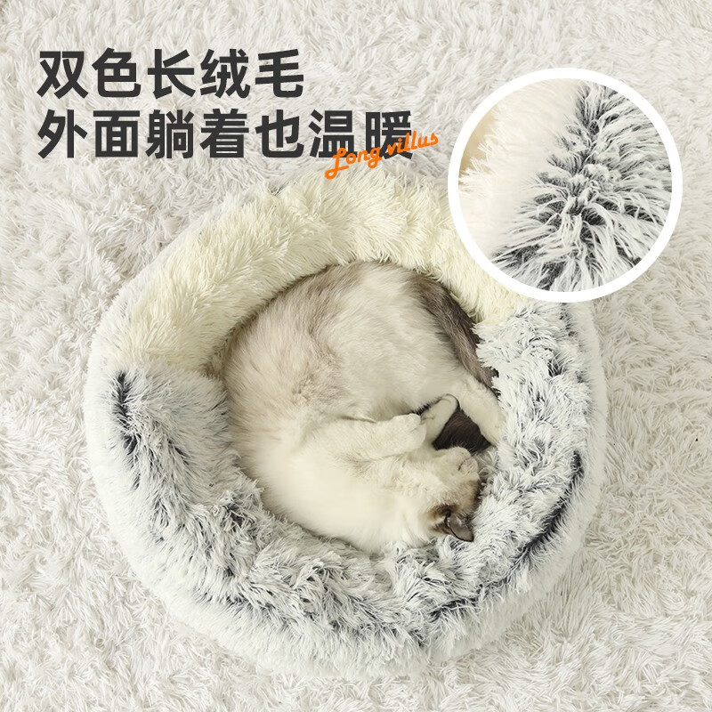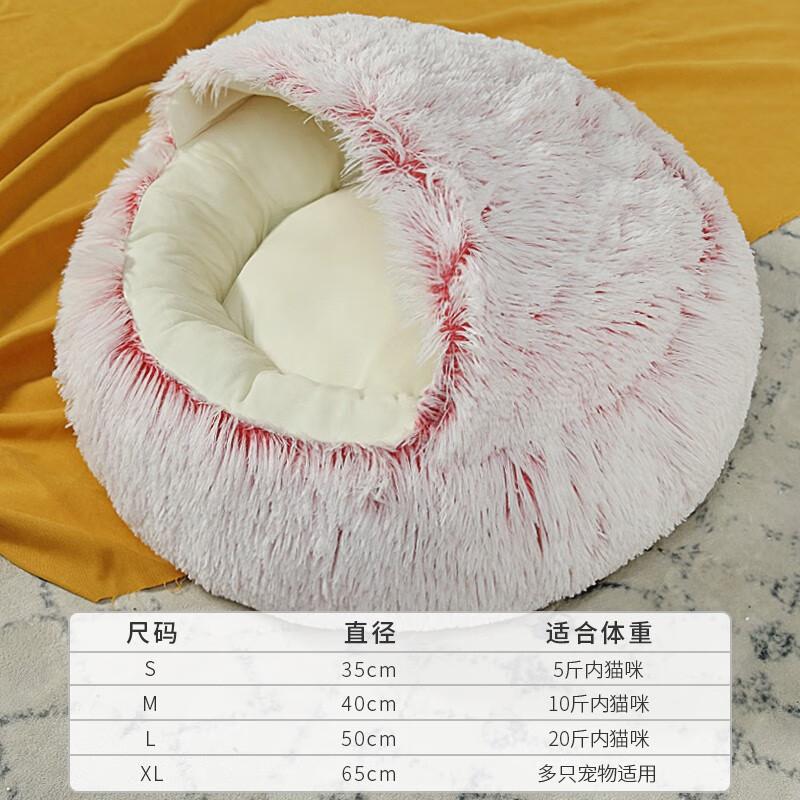 KimPets猫狗窝冬天大猫小型犬半封闭式宠物床秋冬季睡觉保暖加厚垫子猫舍猫屋宠物用品 【樱花粉】光面款 【直径50CM】适用20斤宠物