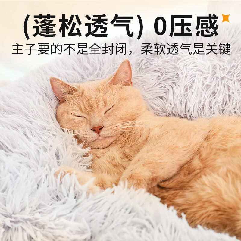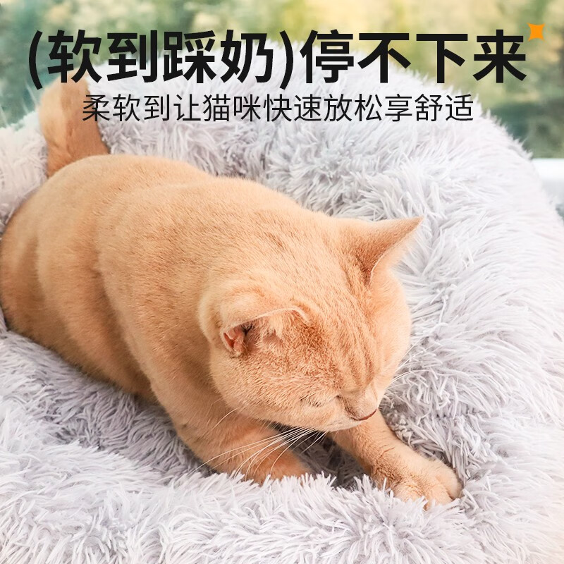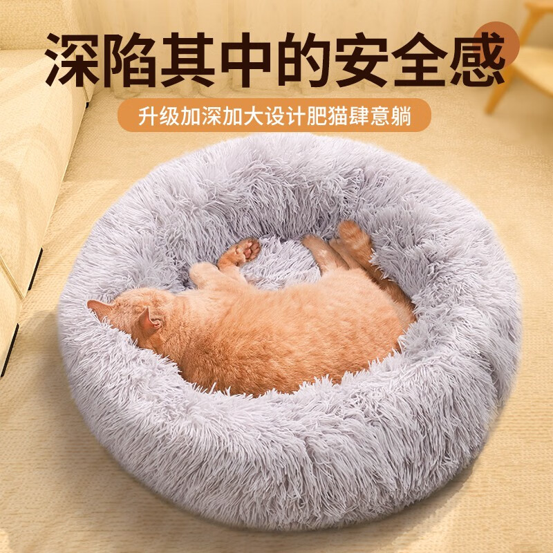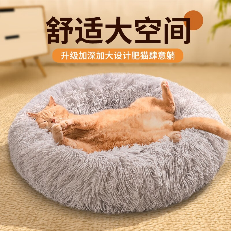 柒哦猫窝保暖冬季狗窝封闭式四季通用甜甜圈猫窝冬天网红宠物垫子用品 保暖长绒深睡窝-灰色 XL【30斤内适用 70cm】