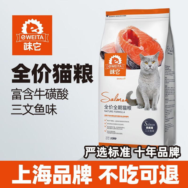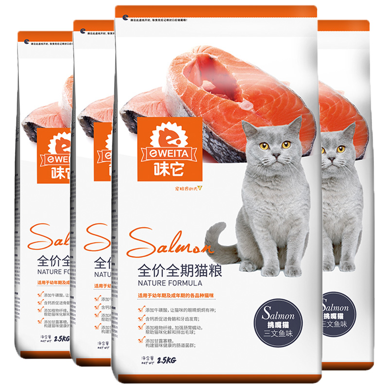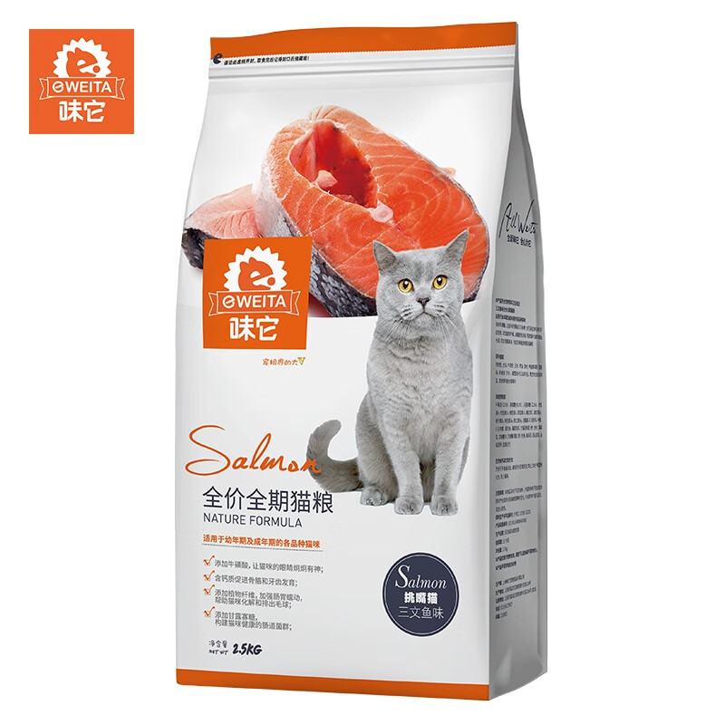味它(e-weita)猫粮三文鱼味成猫幼猫全价主粮英短蓝猫美短增肥营养全面健康 一包共2.5kg