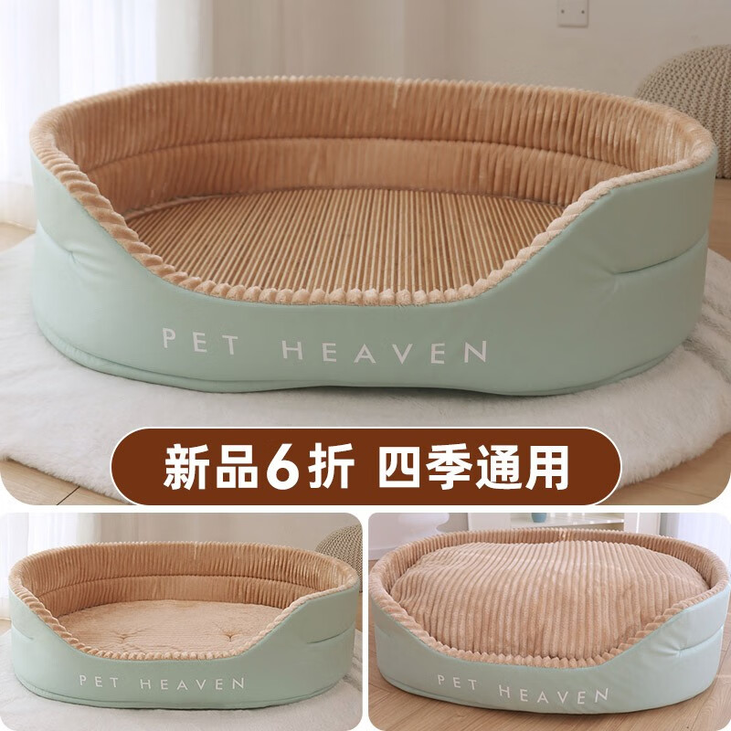 hoopet狗窝四季通用狗床大型犬睡觉可拆洗宠物狗垫子狗狗窝夏季夏天凉席 绿卡其窝 凉席 棉垫【四季通用】 M 65*50*20(推荐30斤内)