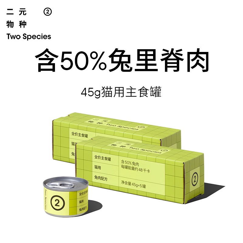 二元物种猫用全价主食罐45gx10罐小克数小鸟胃猫罐头幼猫成猫湿粮无谷无胶 兔肉配方 45gx5罐x2盒