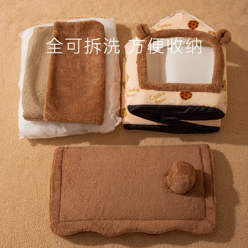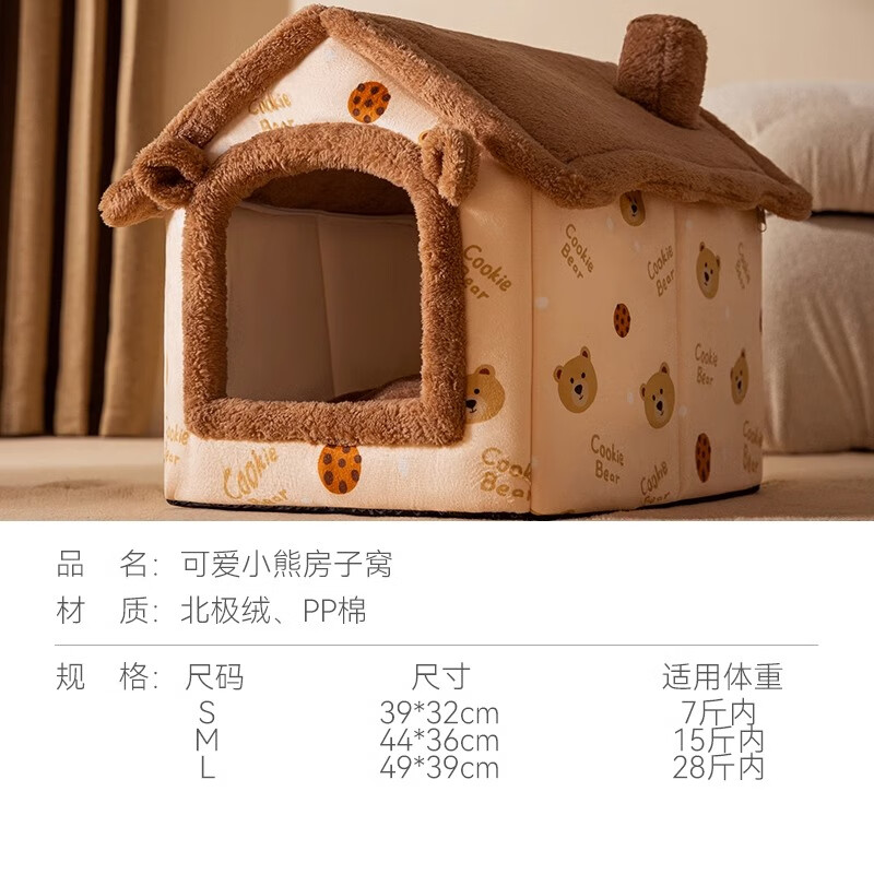 嬉皮狗(hipidog)狗窝冬天保暖房子型狗床狗屋四季通用封闭式猫窝猫床垫子宠物用品 可爱小熊(搭配毛毯) S(适用体重7斤内)