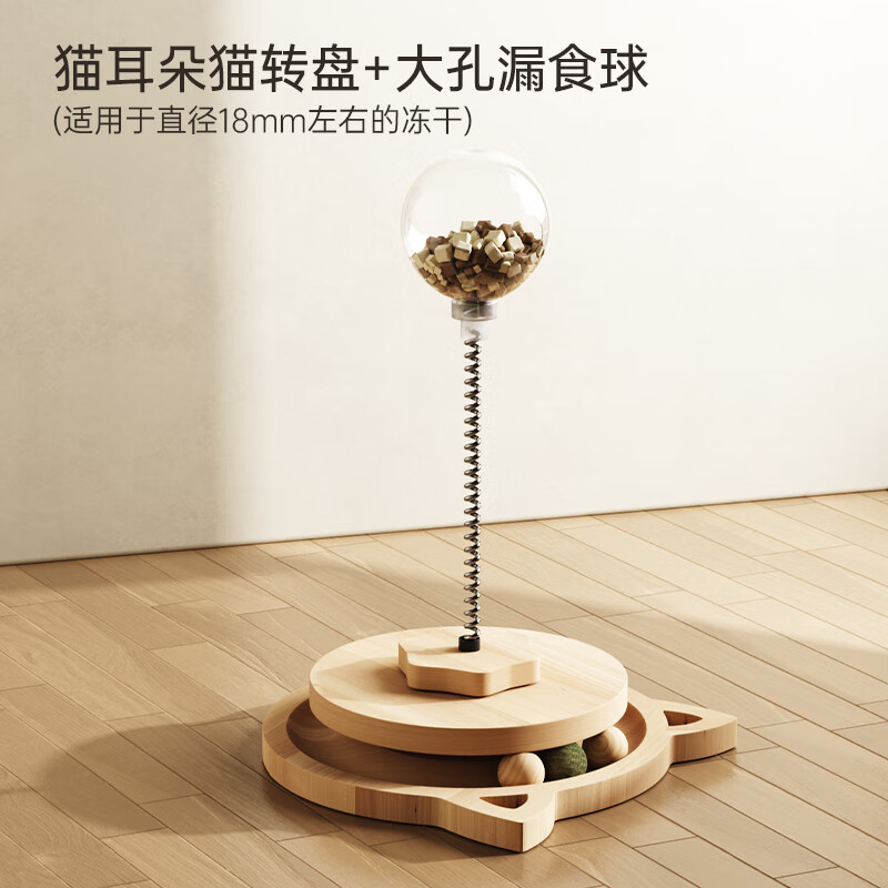 猫咪玩具自嗨解闷逗猫棒猫漏食玩具猫咪用品大猫转盘零食冻干球 【大孔冻干球】猫耳款(薄荷球 防滑垫)