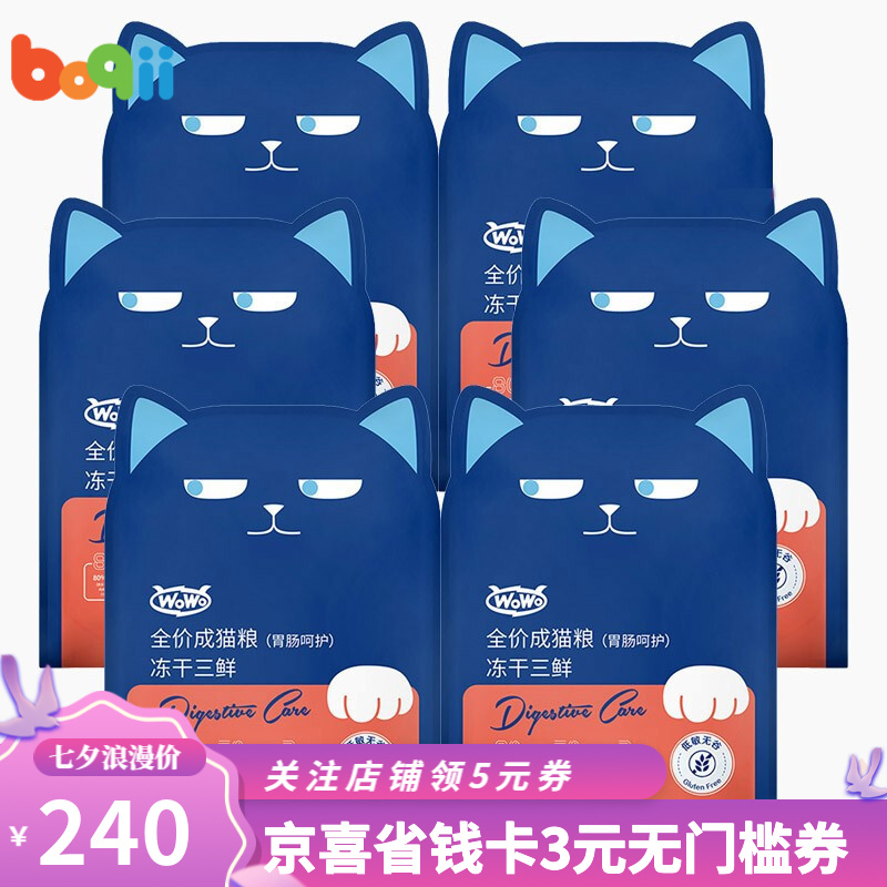 WOWO喔喔猫粮 无谷冻干三鲜全价猫粮 成幼猫主粮增肥去毛球猫干粮英短布偶通用 成猫粮1kg*6