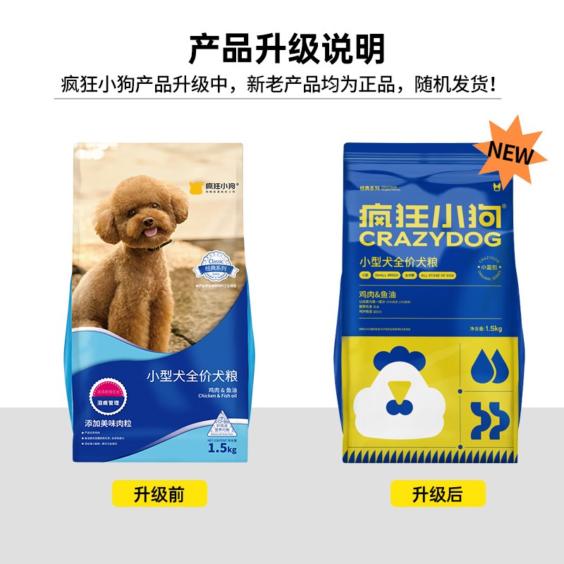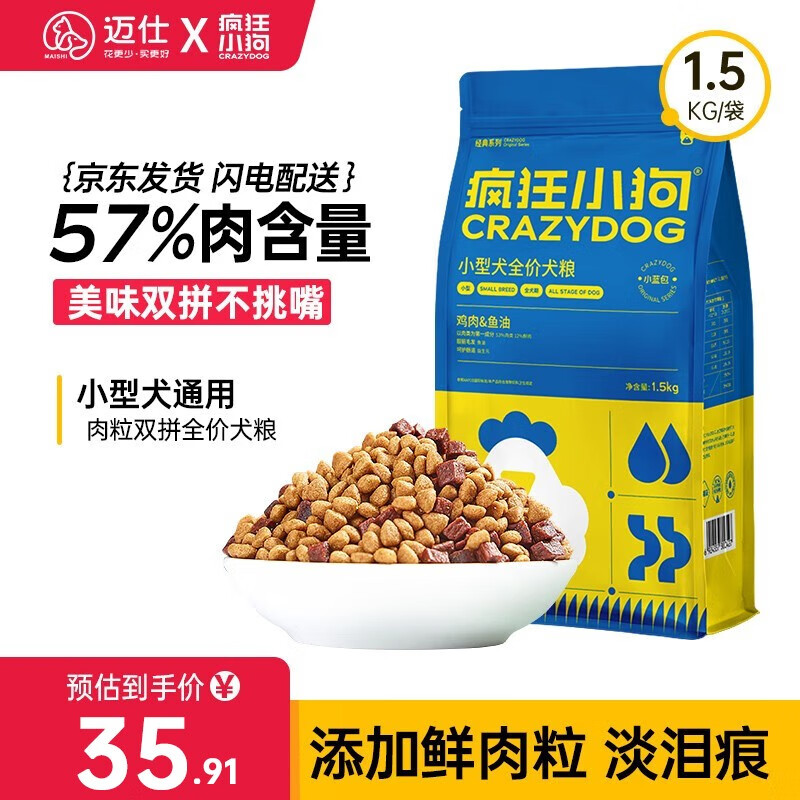 疯狂小狗 狗粮小型犬全阶段泰迪贵宾博美比熊通用型肉粒双拼粮 【小蓝包】小型犬鸡肉鱼油1.5kg