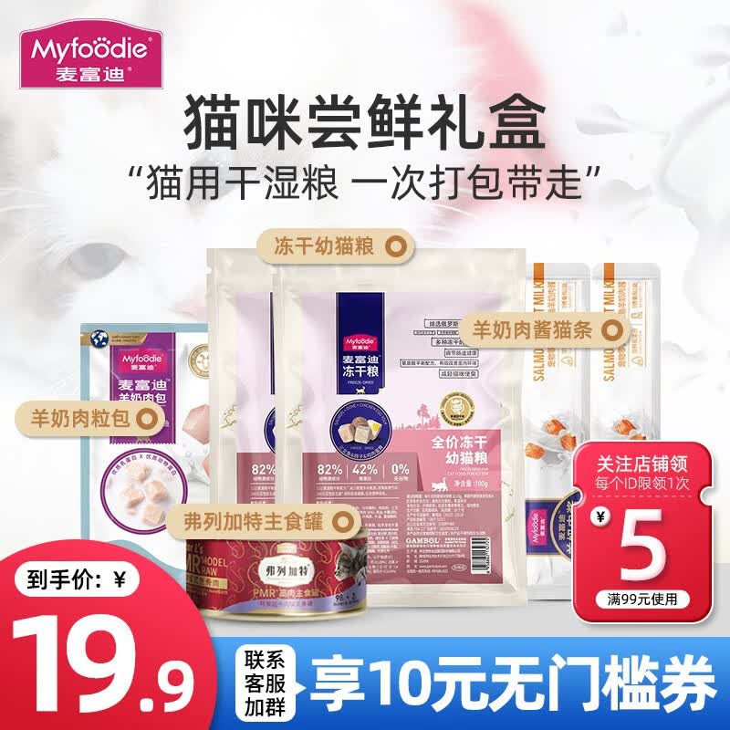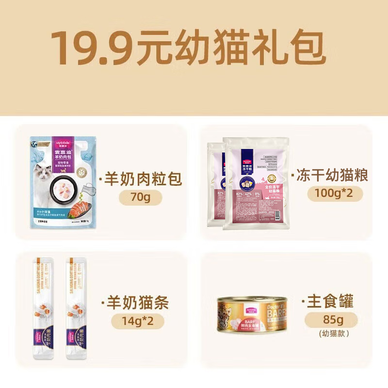 麦富迪【新客尝鲜】猫咪零食猫条猫罐头零食主食罐湿粮包冻干猫粮试吃装 19.9幼猫-粮 肉粒包 罐头 猫条