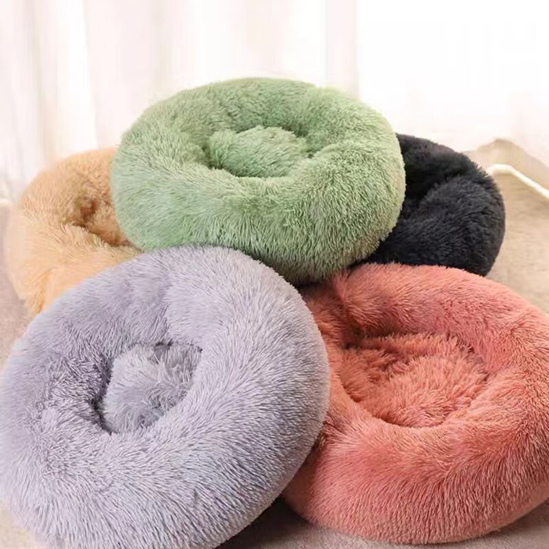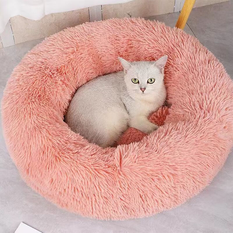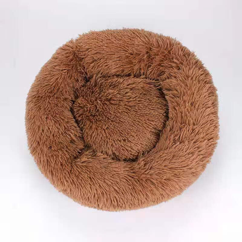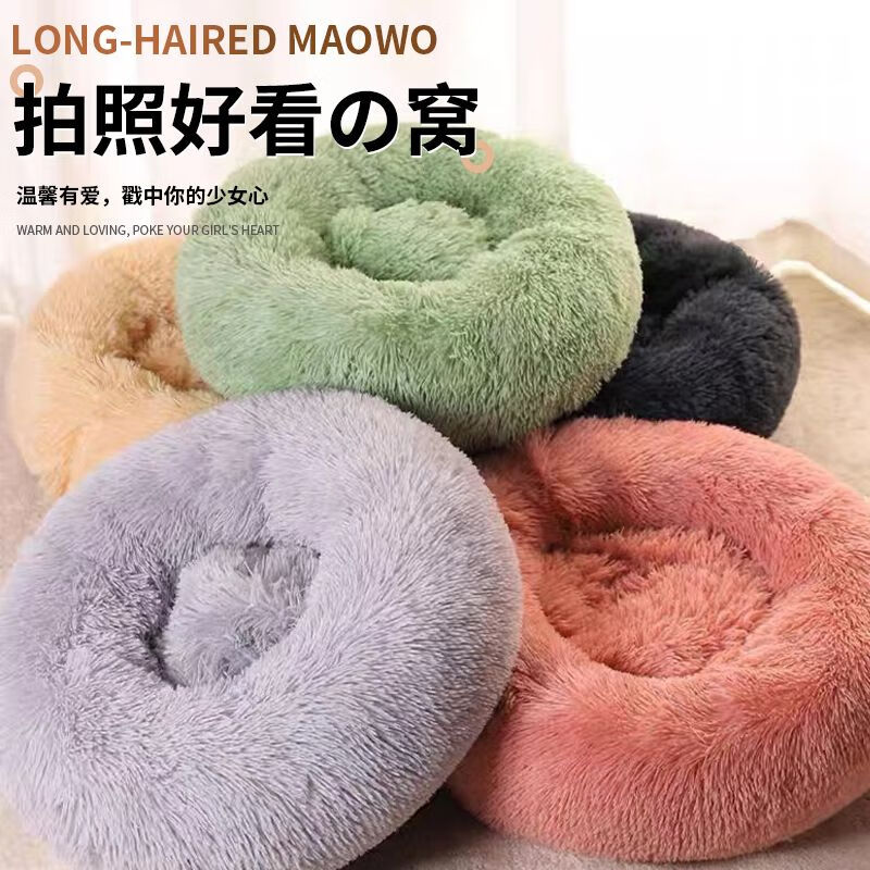 风宠狗窝冬季加厚保暖圆形猫窝四季通用长毛绒保暖床小型宠物窝 浅灰色窝 外径40cm适合猫8斤内 狗5斤内