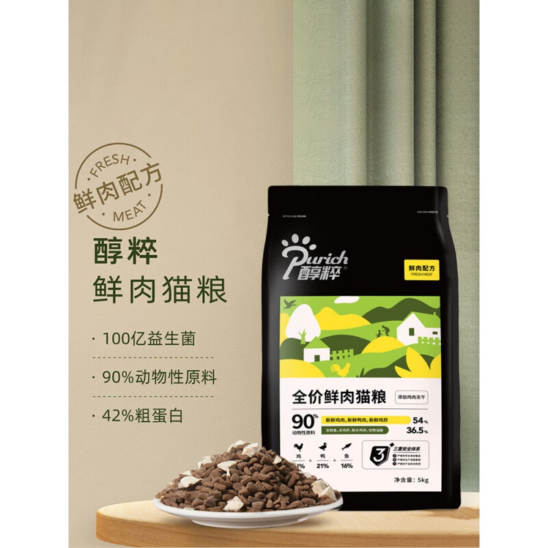 醇粹(Purich)shf格温全价黑标鲜肉猫粮冻干成猫幼猫增肥发腮营养纯粹国产猫粮5 黑色 鲜肉配方-添加鸡肉冻干 5kg