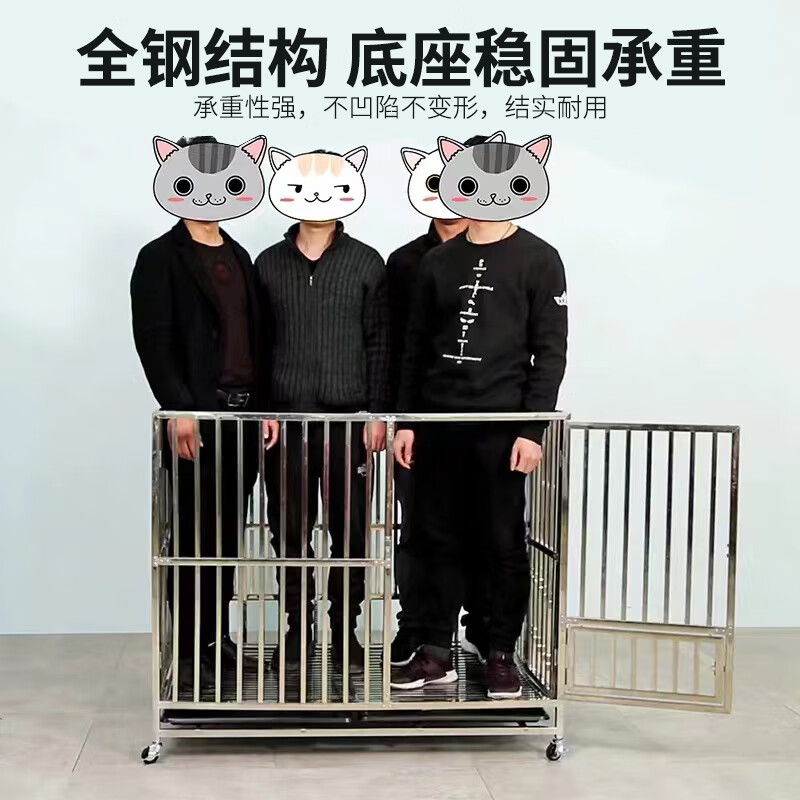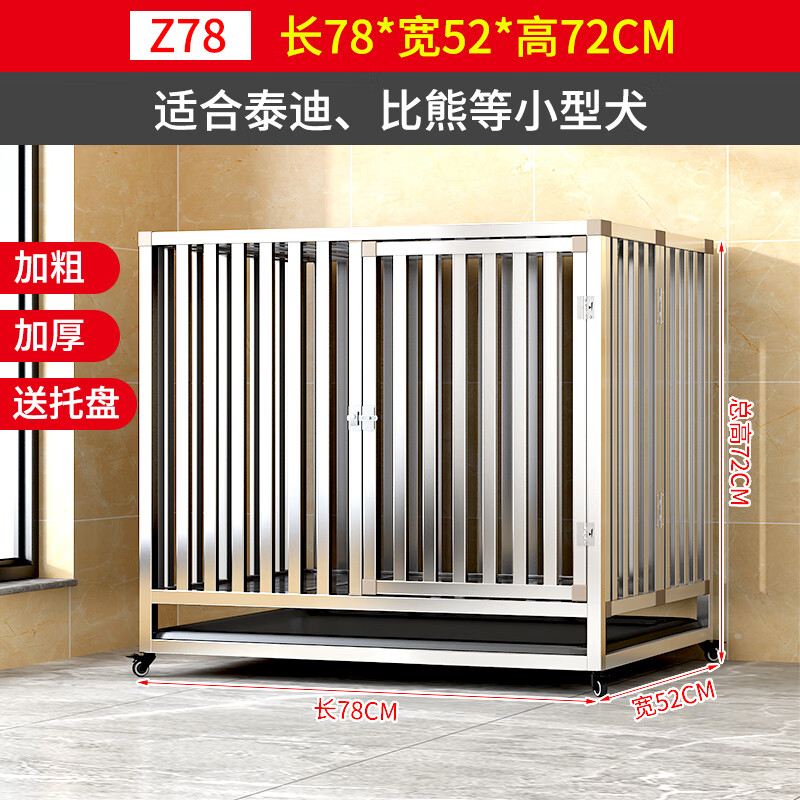 蒂乐森 不锈钢狗笼子中大型犬室外折叠带厕所分离金毛拉布拉多方管宠物笼 加粗加厚长78宽52高72 泰迪 博美 贵宾等 折叠型
