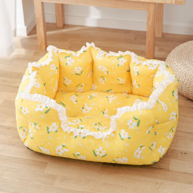 嬉皮狗猫窝保暖狗窝小型犬狗狗床四季通用猫窝非可拆洗泰迪宠物用品 黄色小花四季款 中号-20内宠物通用