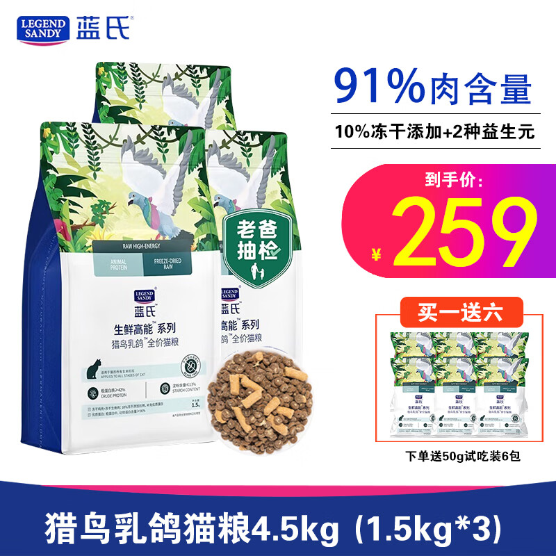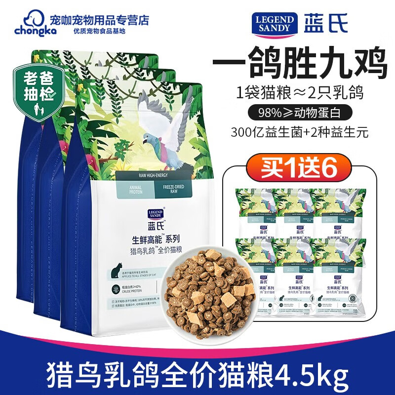 LEGENDSANDY蓝氏猫粮 猎鸟乳鸽系列全价无谷鲜肉猫粮成猫幼猫生骨肉冻干粮 猎鸟乳鸽4.5kg(1.5kg*3)