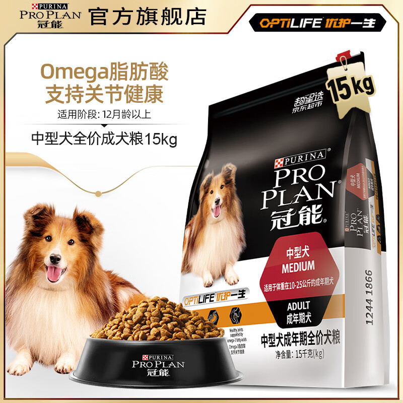 冠能(PRO PLAN)狗粮中型成犬狗粮萨摩哈士奇通用型高消化吸收配方 鸡肉味 15kg 成犬粮(2段大于12个月)