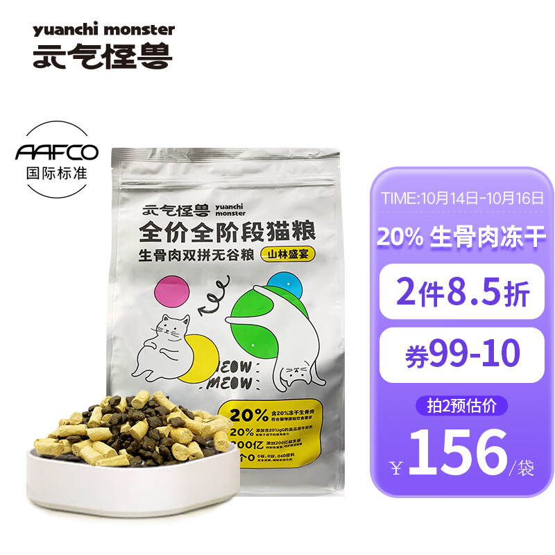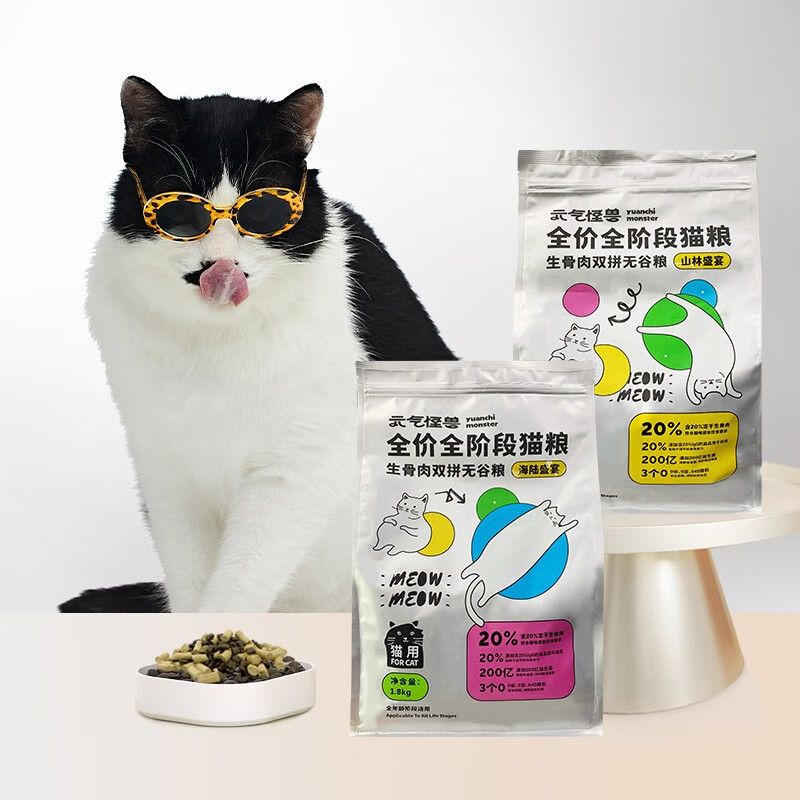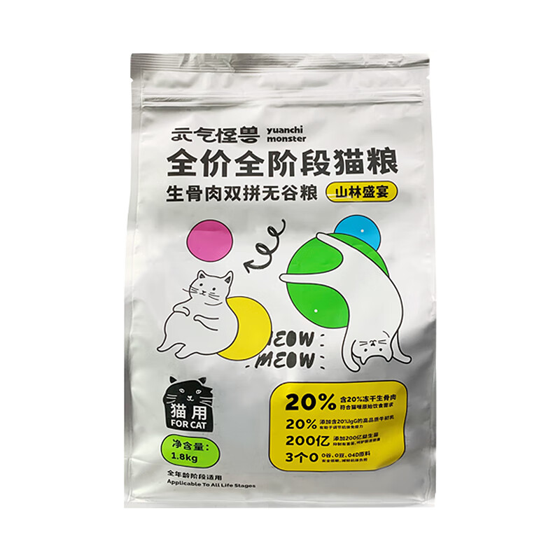 元气怪兽 全价全阶段猫粮生骨肉冻干双拼无谷主粮 山林盛宴1.8kg 幼猫成猫添加200亿益生菌