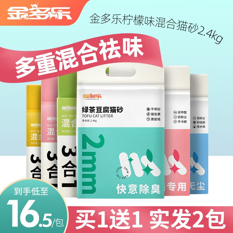 金多乐绿茶豆腐猫砂2.4kg混合猫沙几近无尘满10/20斤用品 钠基矿猫砂原味4kg