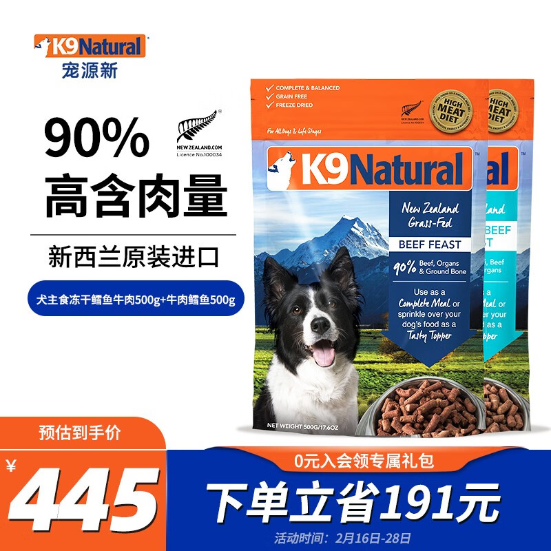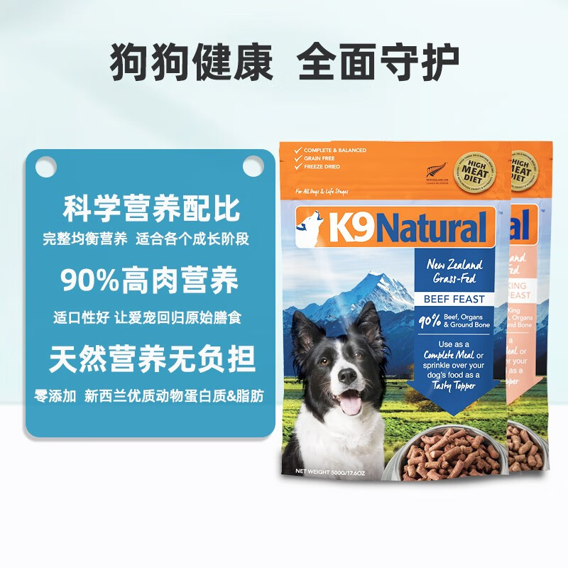 K9Natural【顺丰快递】新西兰原装进口狗粮 成幼犬通用冻干犬主粮 牛肉味500g 牛肉鳕鱼味500g