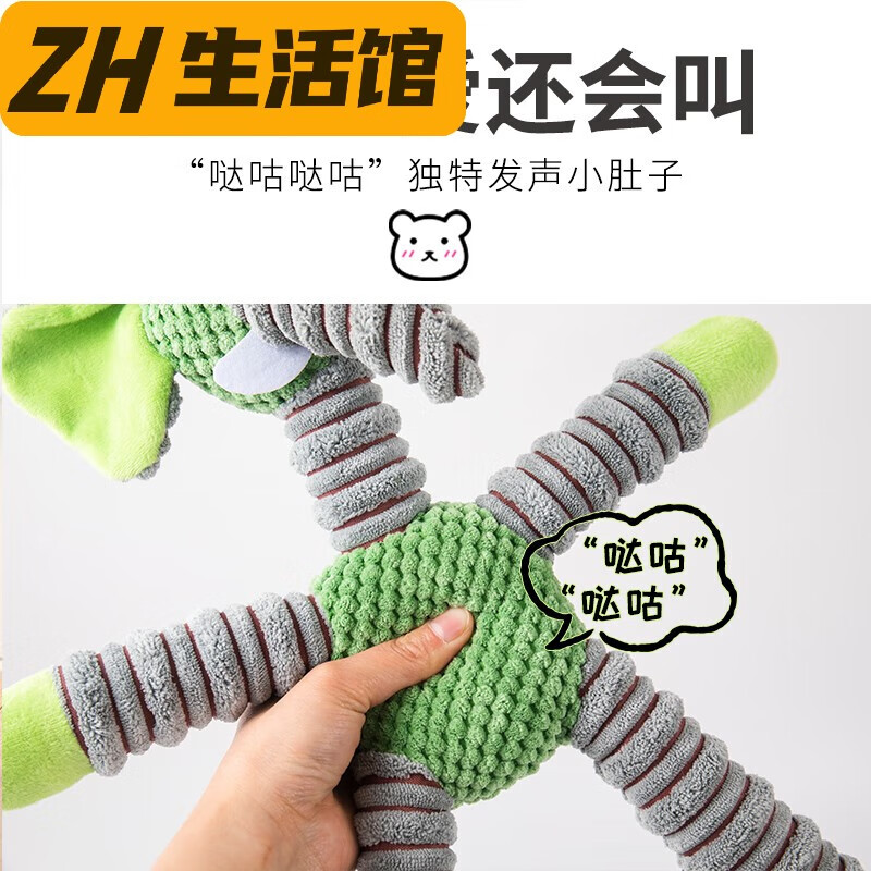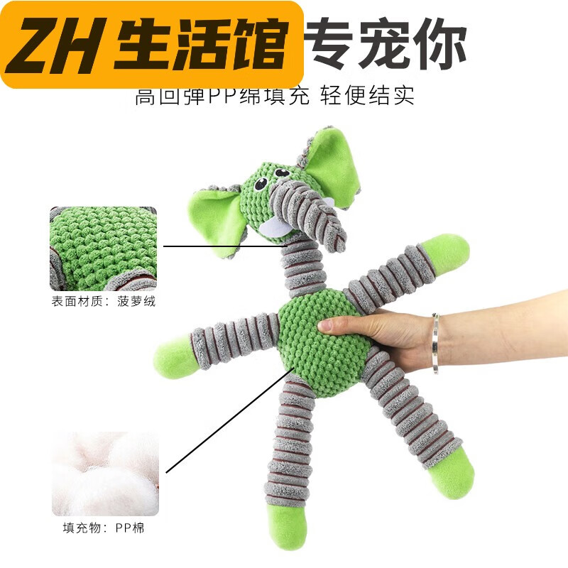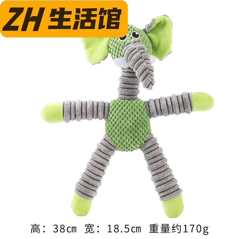 妙普乐宠物狗狗毛绒发声玩具泰迪柴犬磨牙中大型犬柯基耐咬训练益智 绿色大象