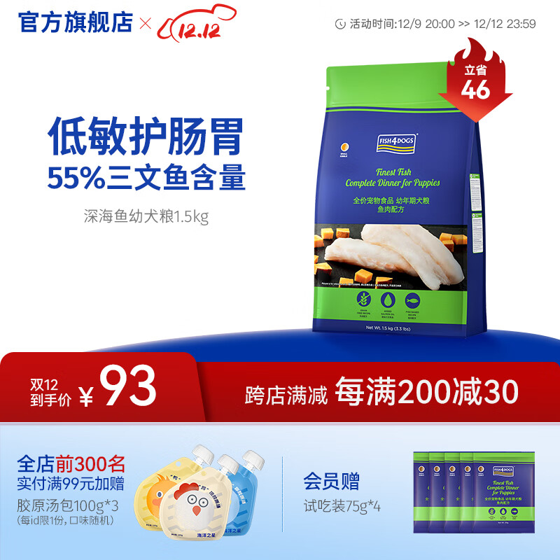 海洋之星深海鱼狗粮幼犬无谷幼犬狗粮泰迪柯基比熊奶糕狗干粮 中小型幼犬1-8月 小颗粒1.5kg