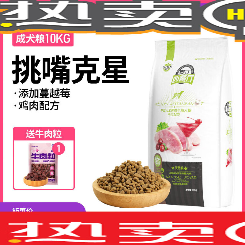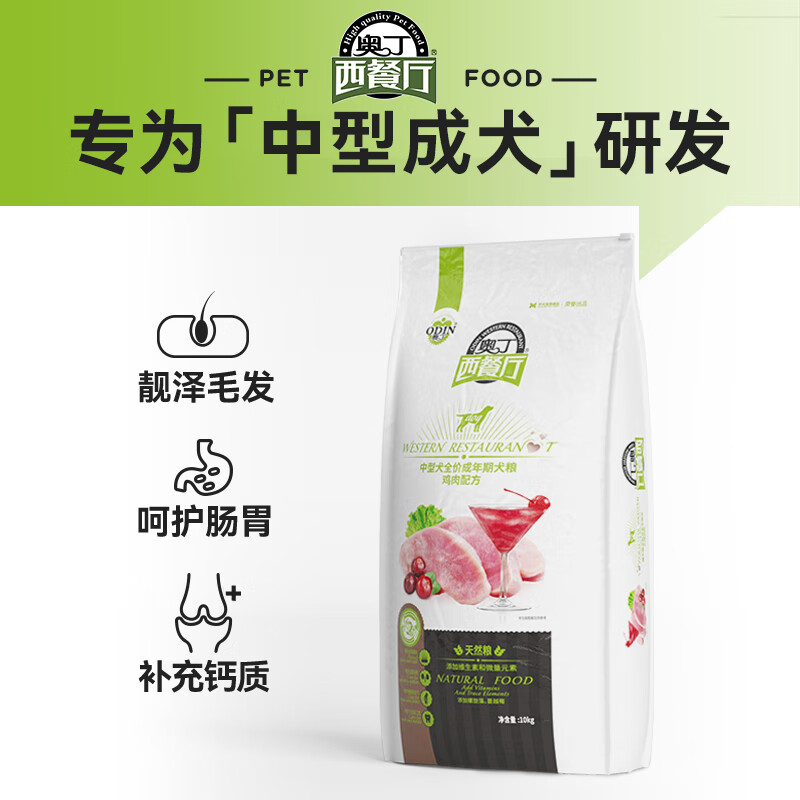 奥丁西餐厅狗粮20斤装通用型边牧柴犬拉布拉多中型成犬专用10k.g 鸡肉味 10k.g