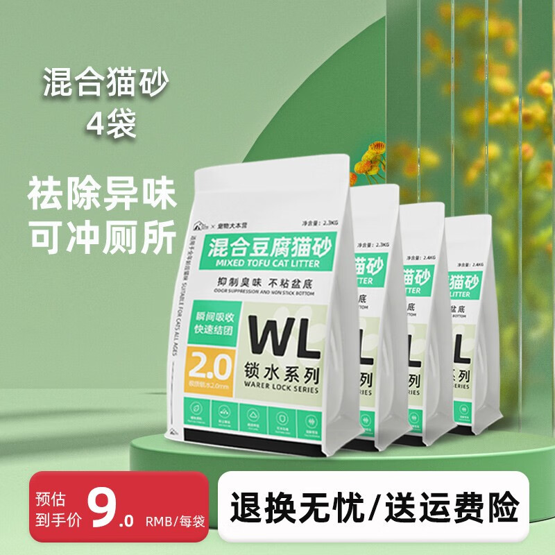 宠物大本营2.3KG原味混合豆腐猫砂2.0mm颗粒低尘易结团除臭吸水猫砂可冲厕所 混合豆腐猫砂2.0mm颗粒*4