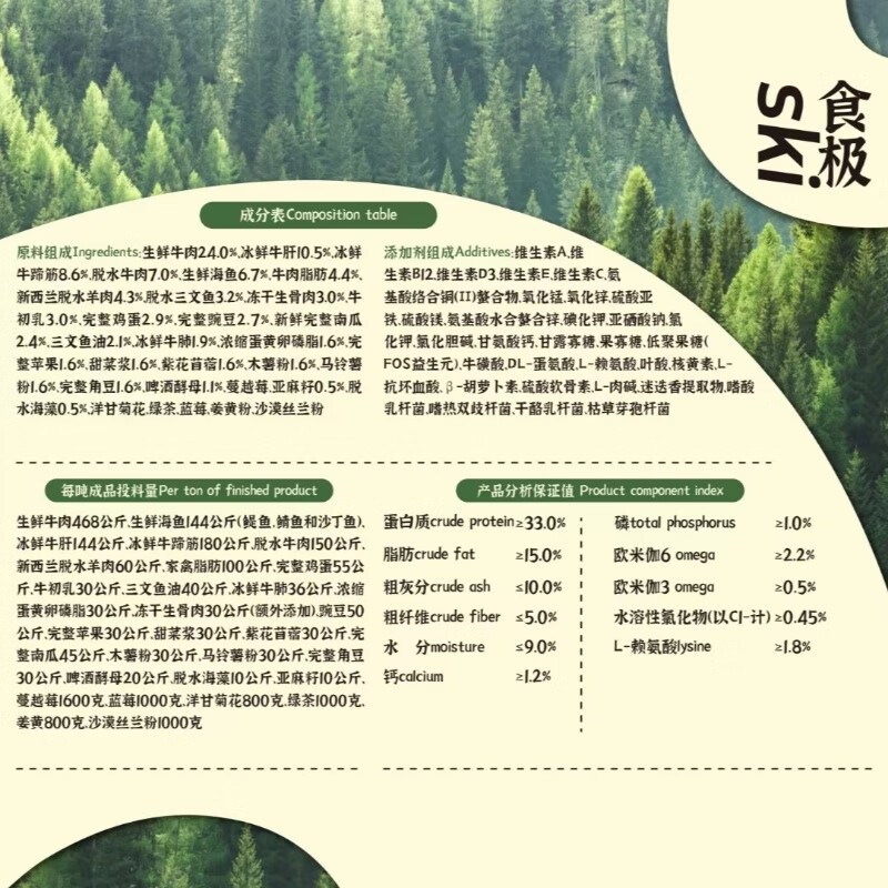 食极食极狗粮ski生鲜冻干肠道护理美毛护肤清火明目低敏无谷高蛋白粮 鸭肉山药1.5kg(清火)送零食 全期 全犬通用